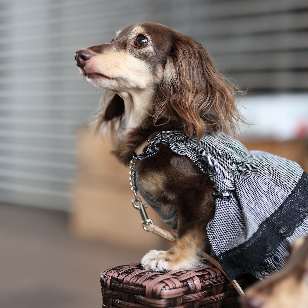 基本的には、まずご愛犬の胴まわり(四つ脚で立った状態で脇すぐ下の位置)を測り、ヌードサイズ表の”胴まわり”にあてはまるサイズをご選択いただくと良いかと存じます。