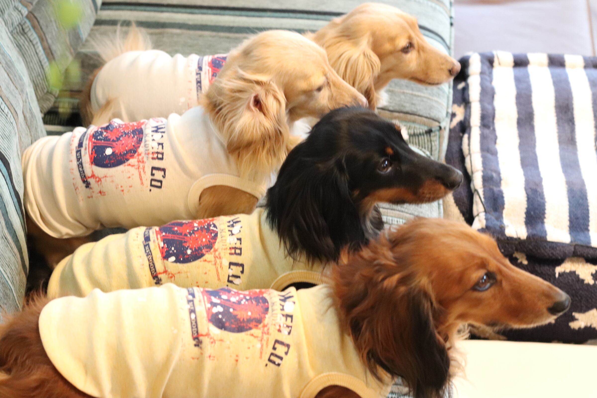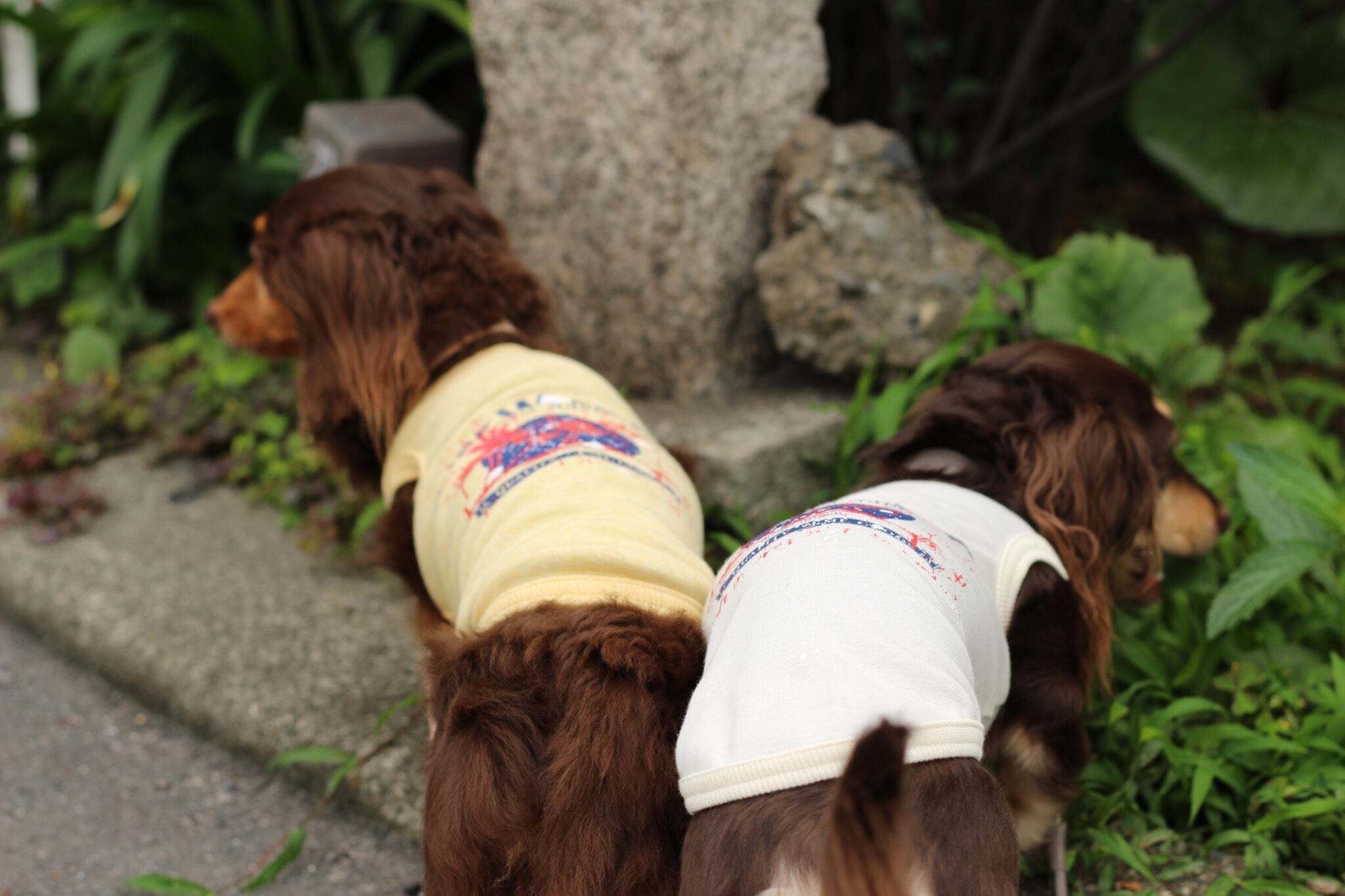 (とても伸びが良いので、もしサイズ間で迷われる際は小さめでも着る事ができそうです。スタッフ犬のサイズ・画像をご参照下さいませ。)