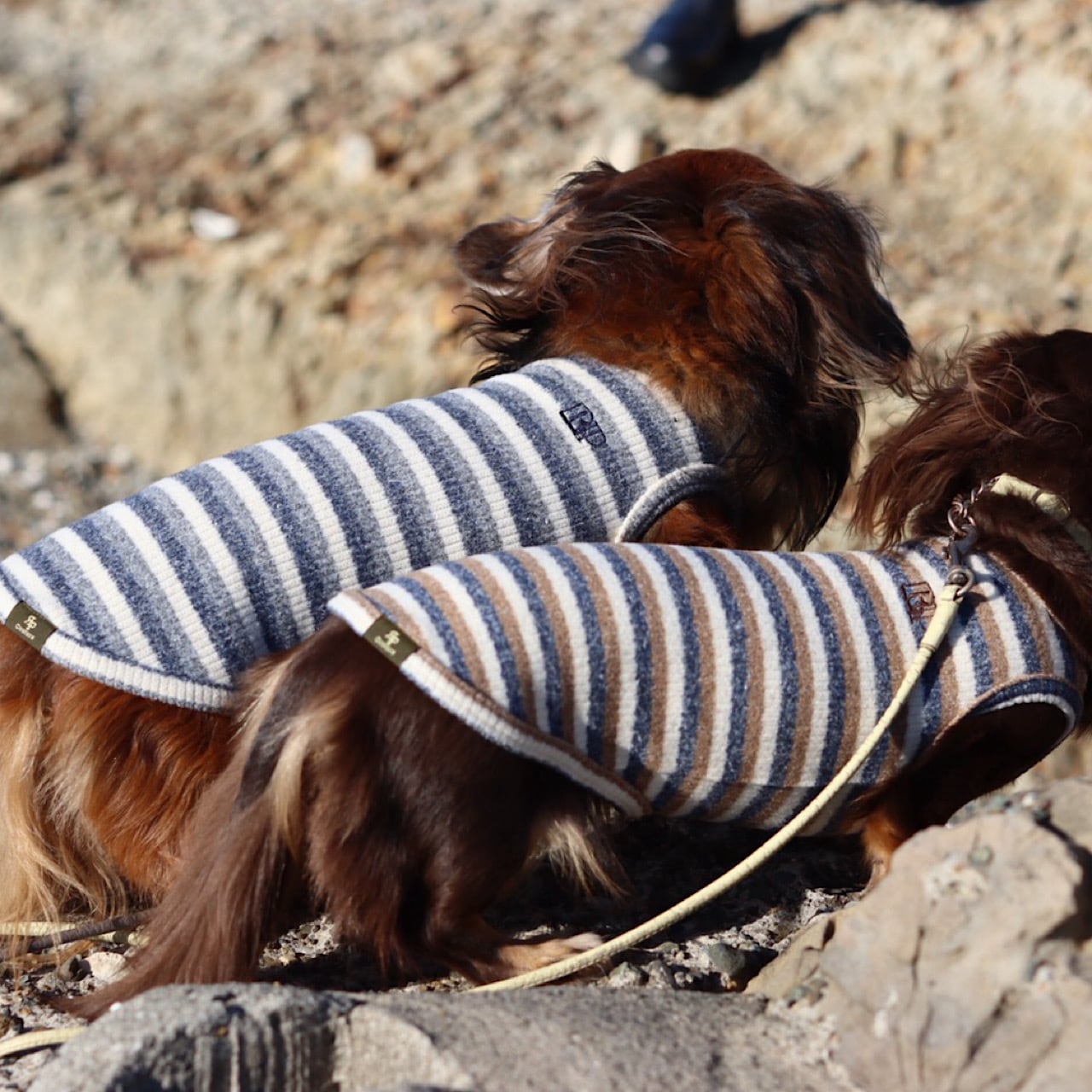 どちらもオフとカジュアルネイビーを基調としたボーダーがシンプルだけど印象的です‼︎