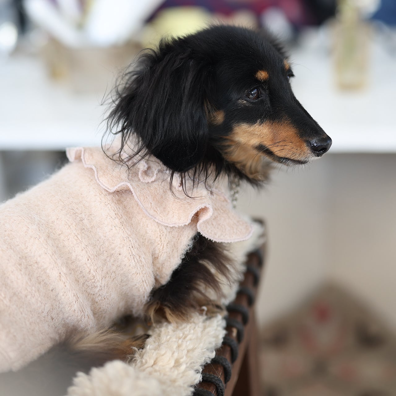 バックから肩にかけてのニットフリルが可愛い~♪