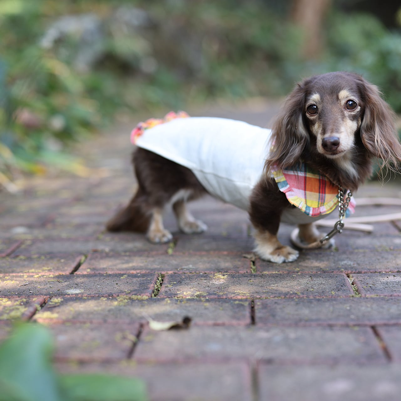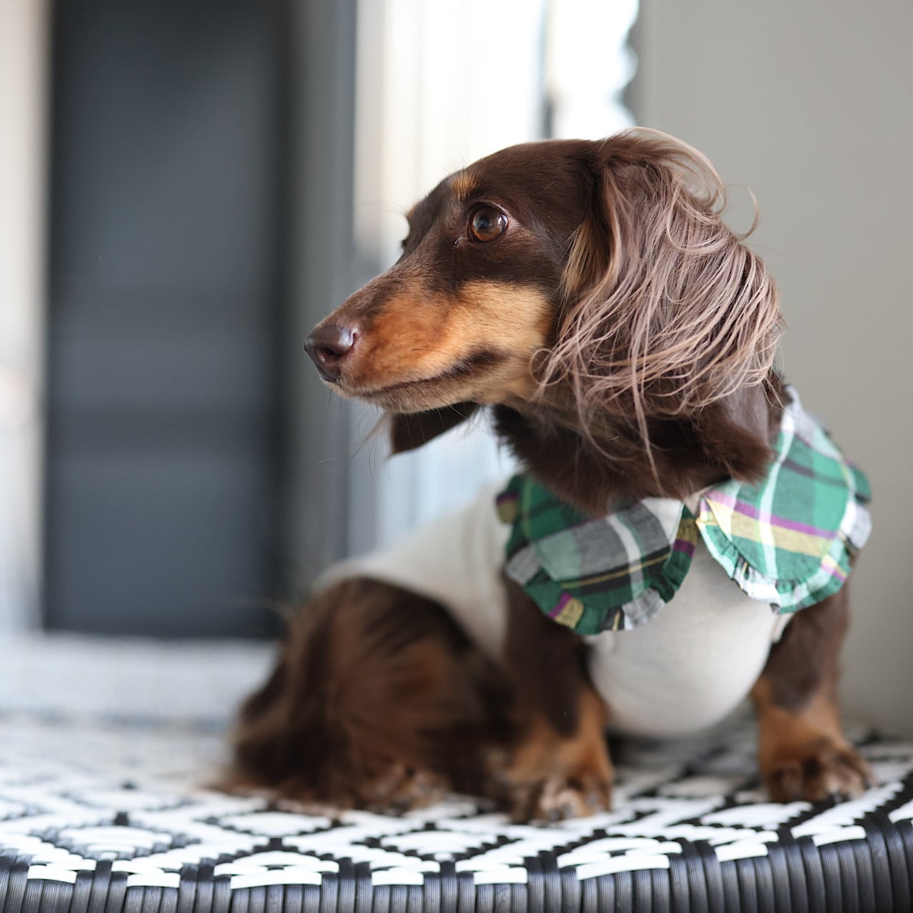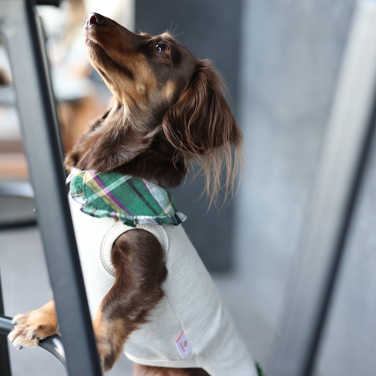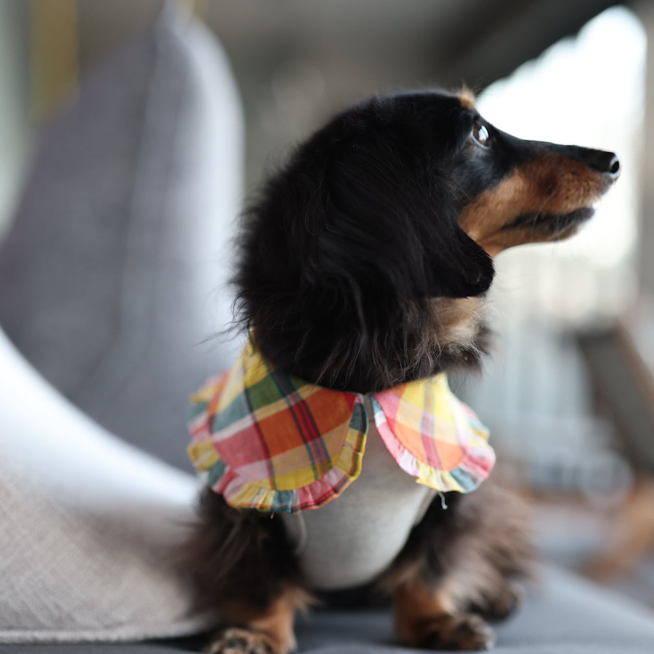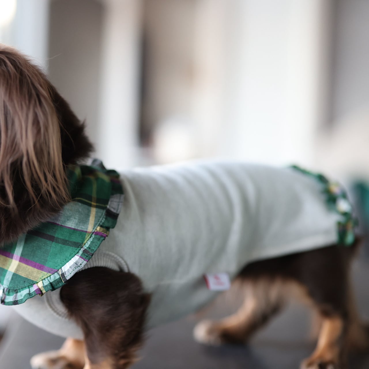 上品に主張するえりは、ダックスの短い前足に丁度よいバランスになるよう計算されています。