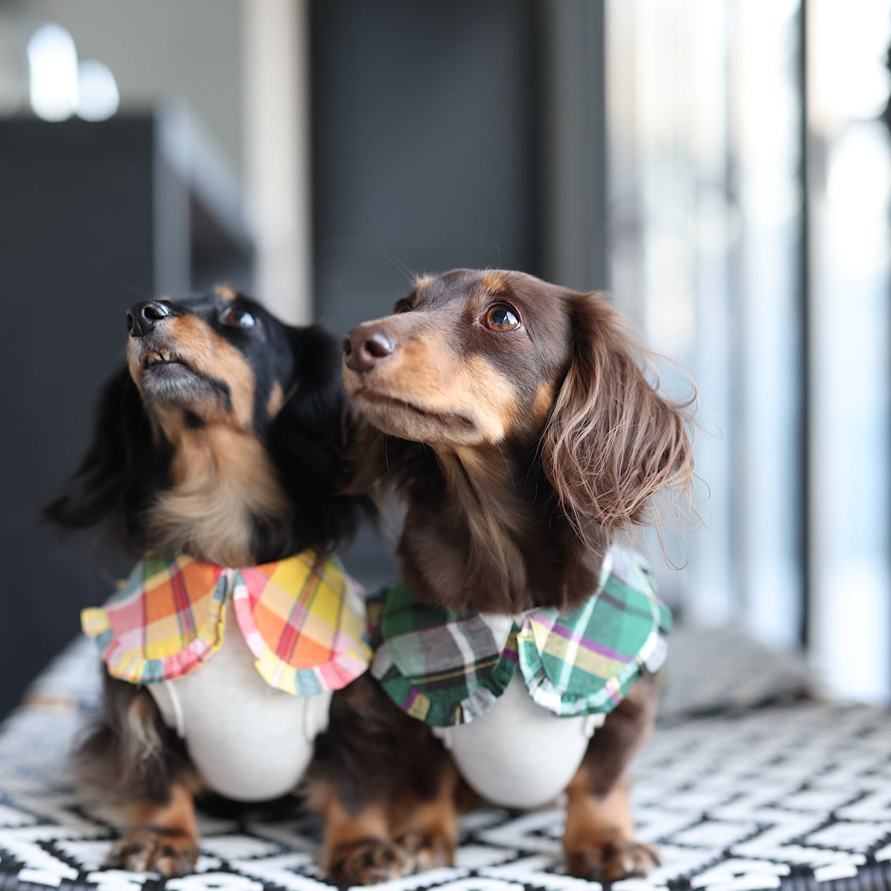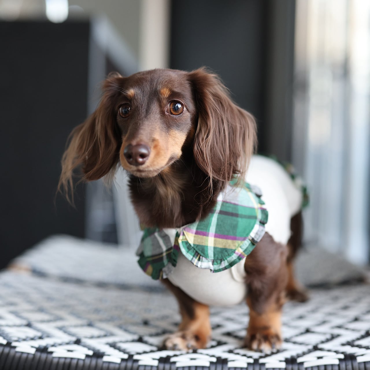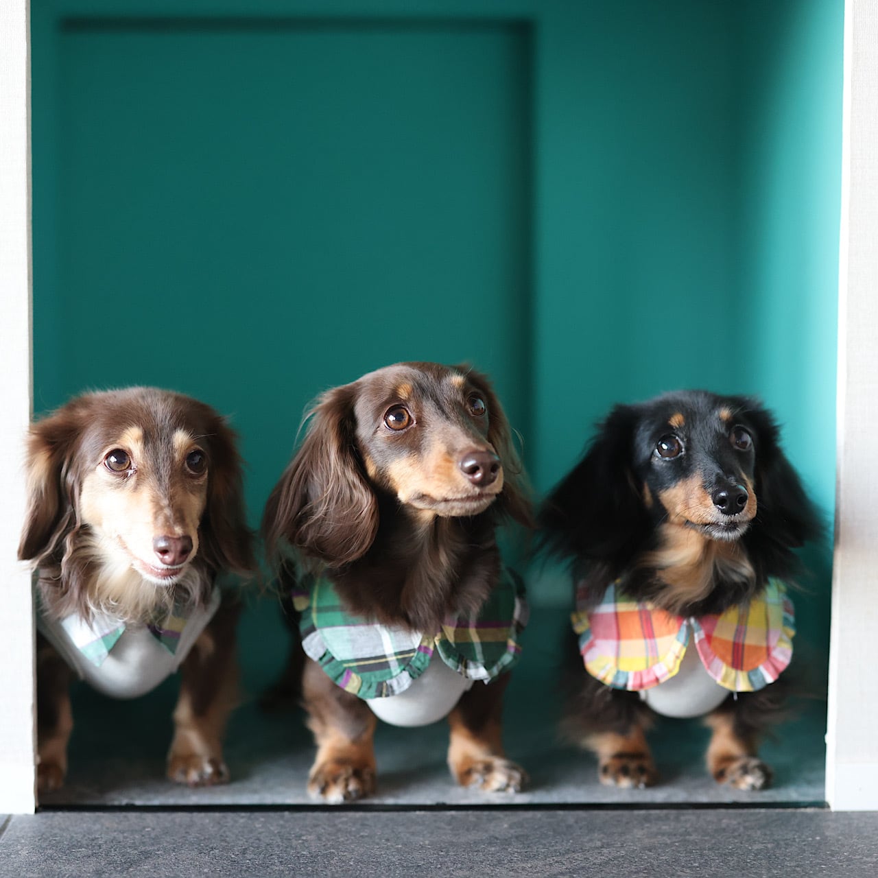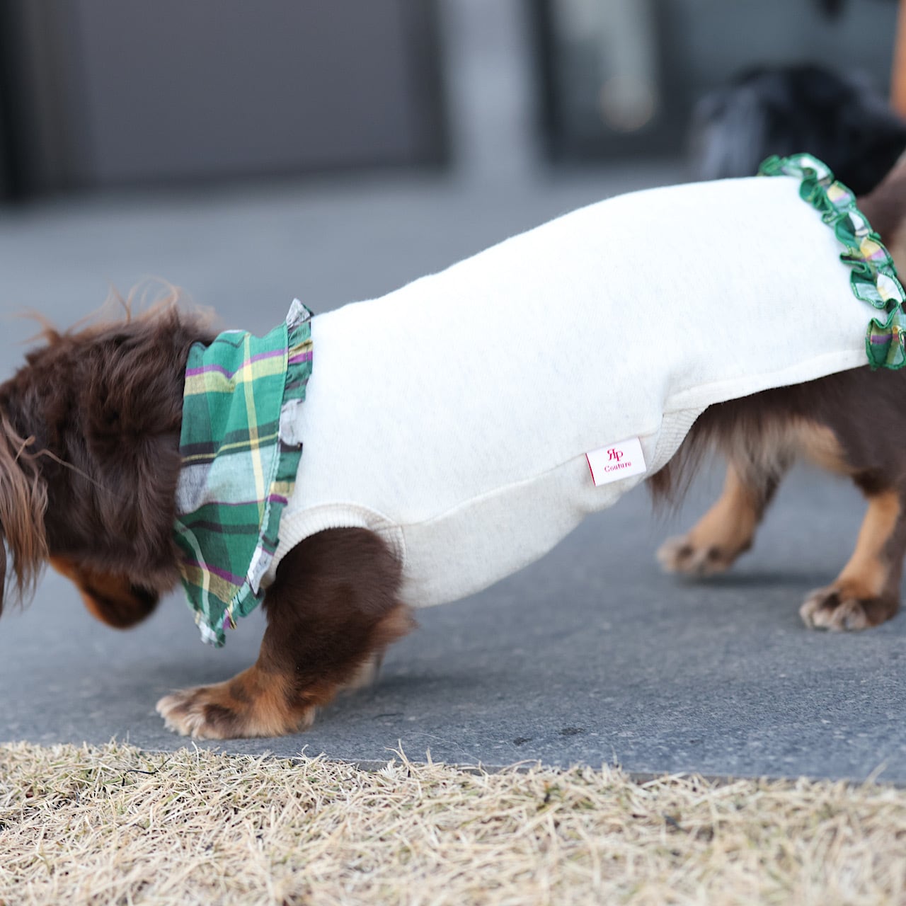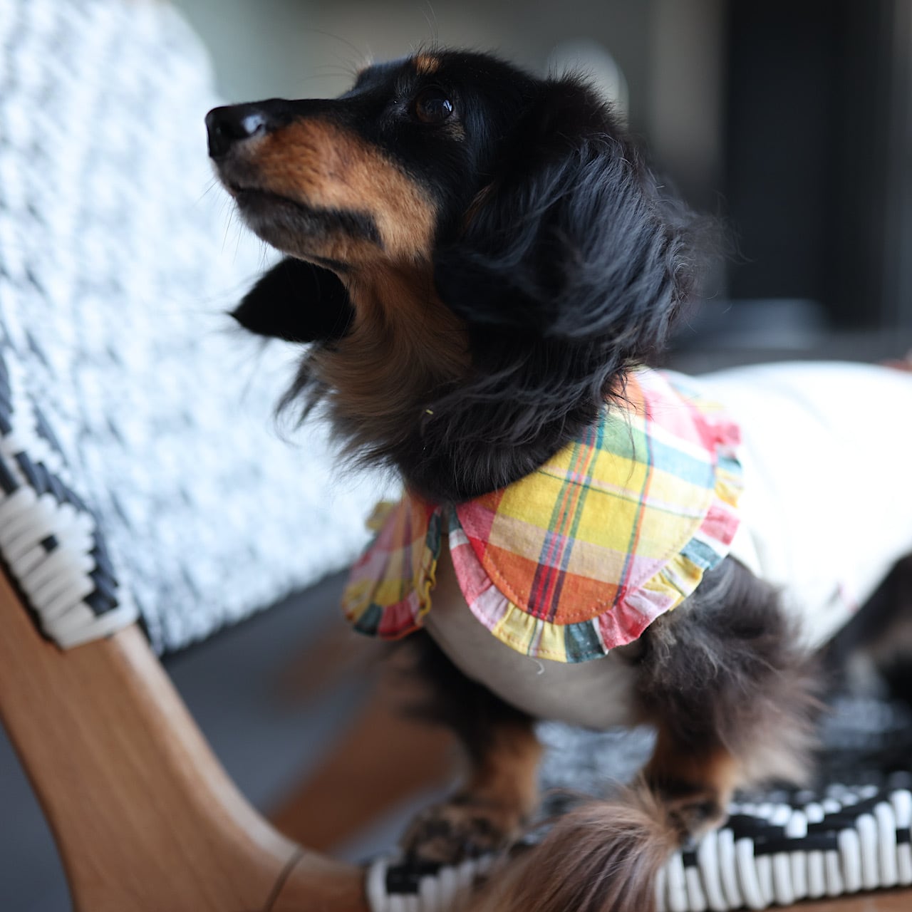 上品に主張するえりは、ダックスの短い前足に丁度よいバランスになるよう計算されています。