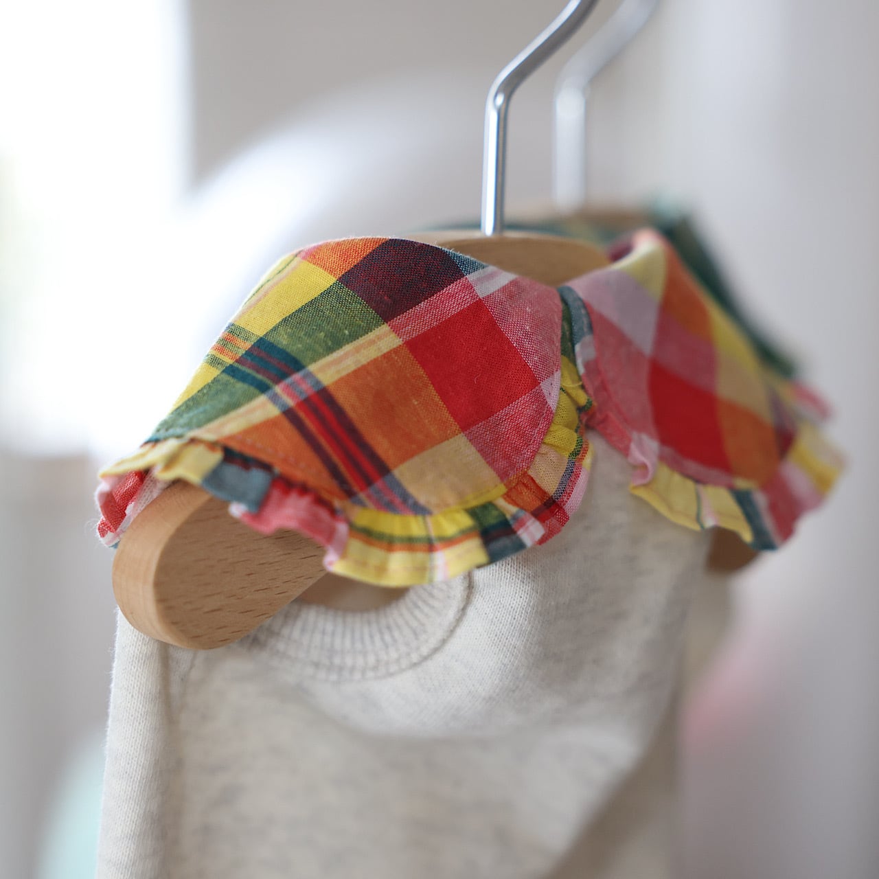 身頃は薄手のふっくら柔らかいミニ裏毛に、爽やかなシャツを組み合わせました。