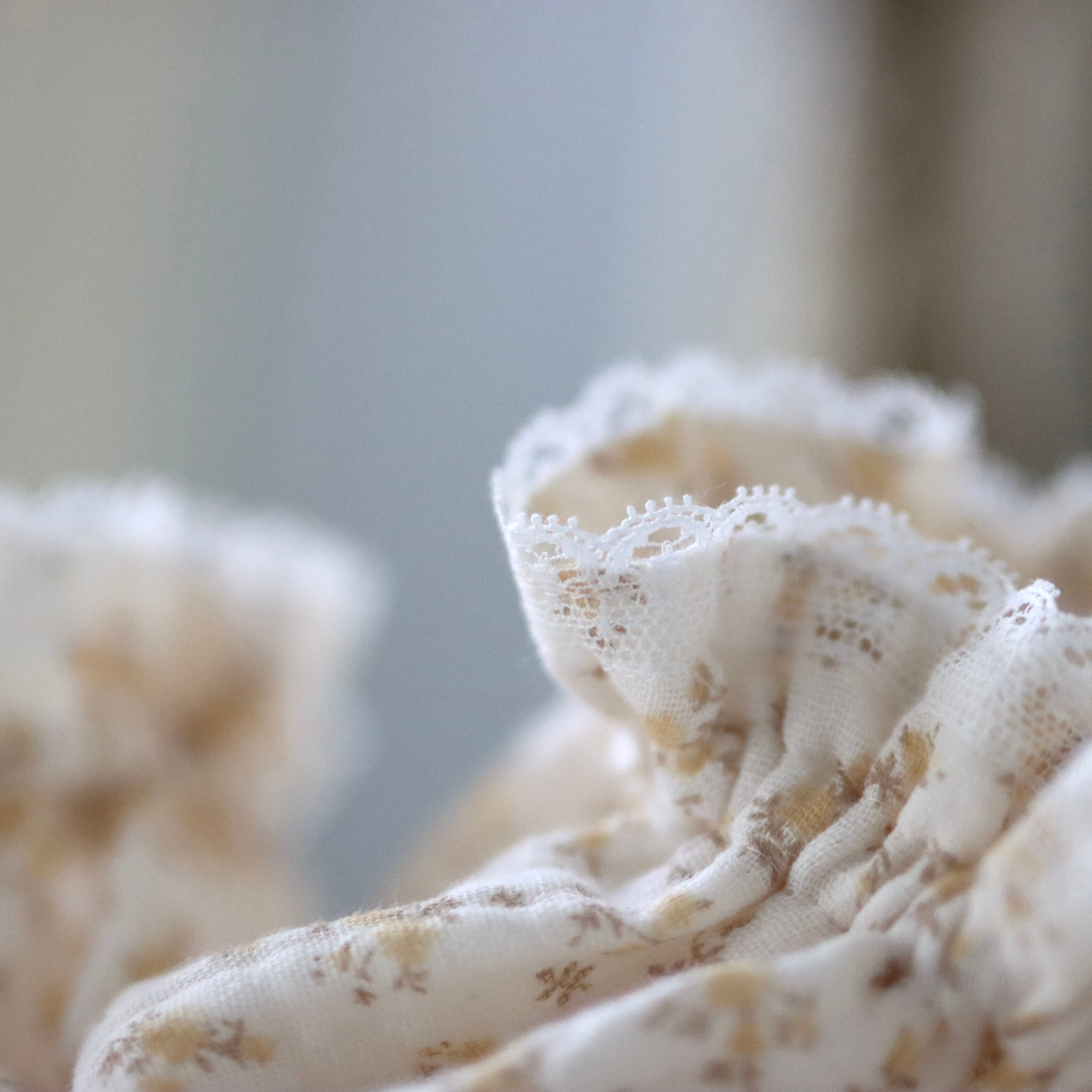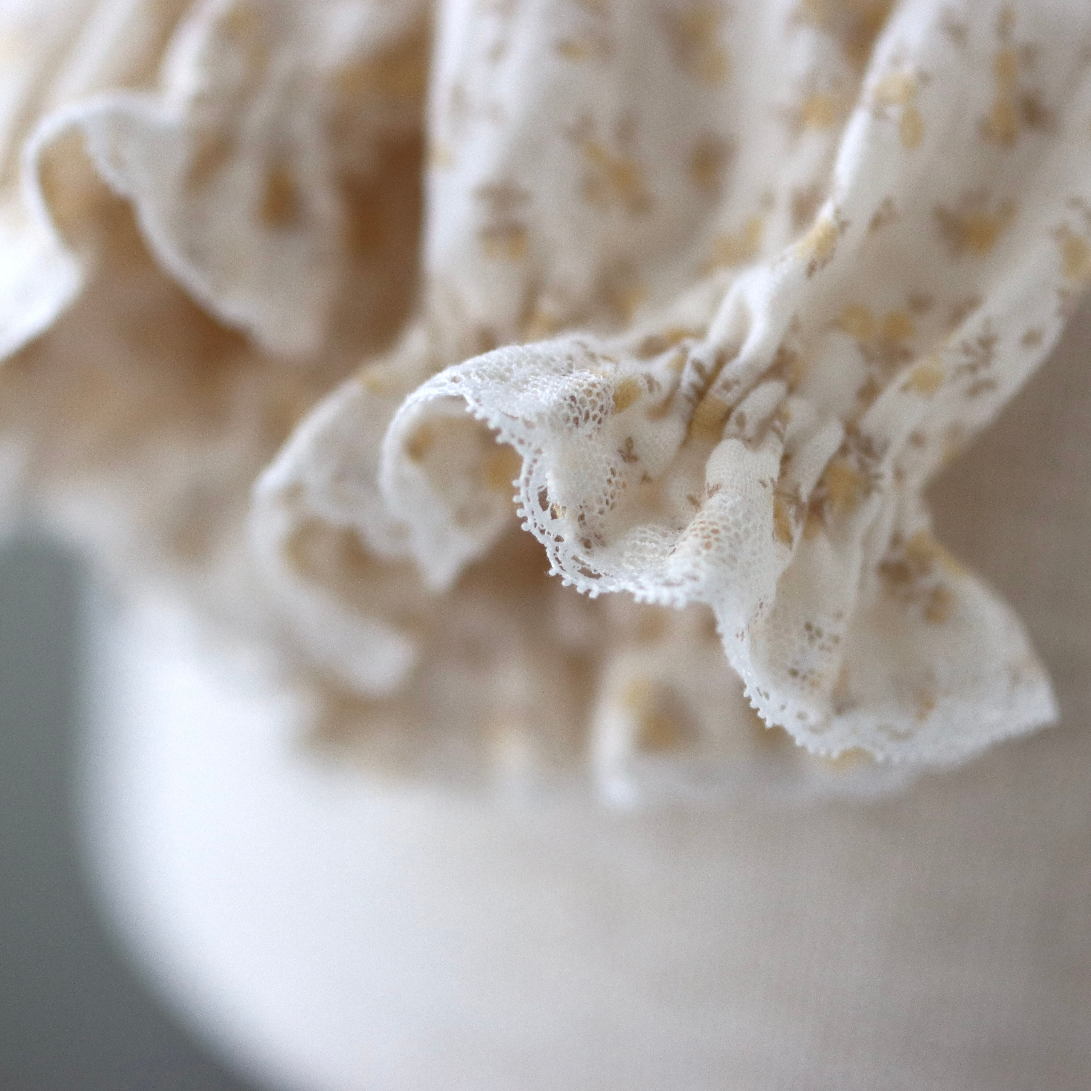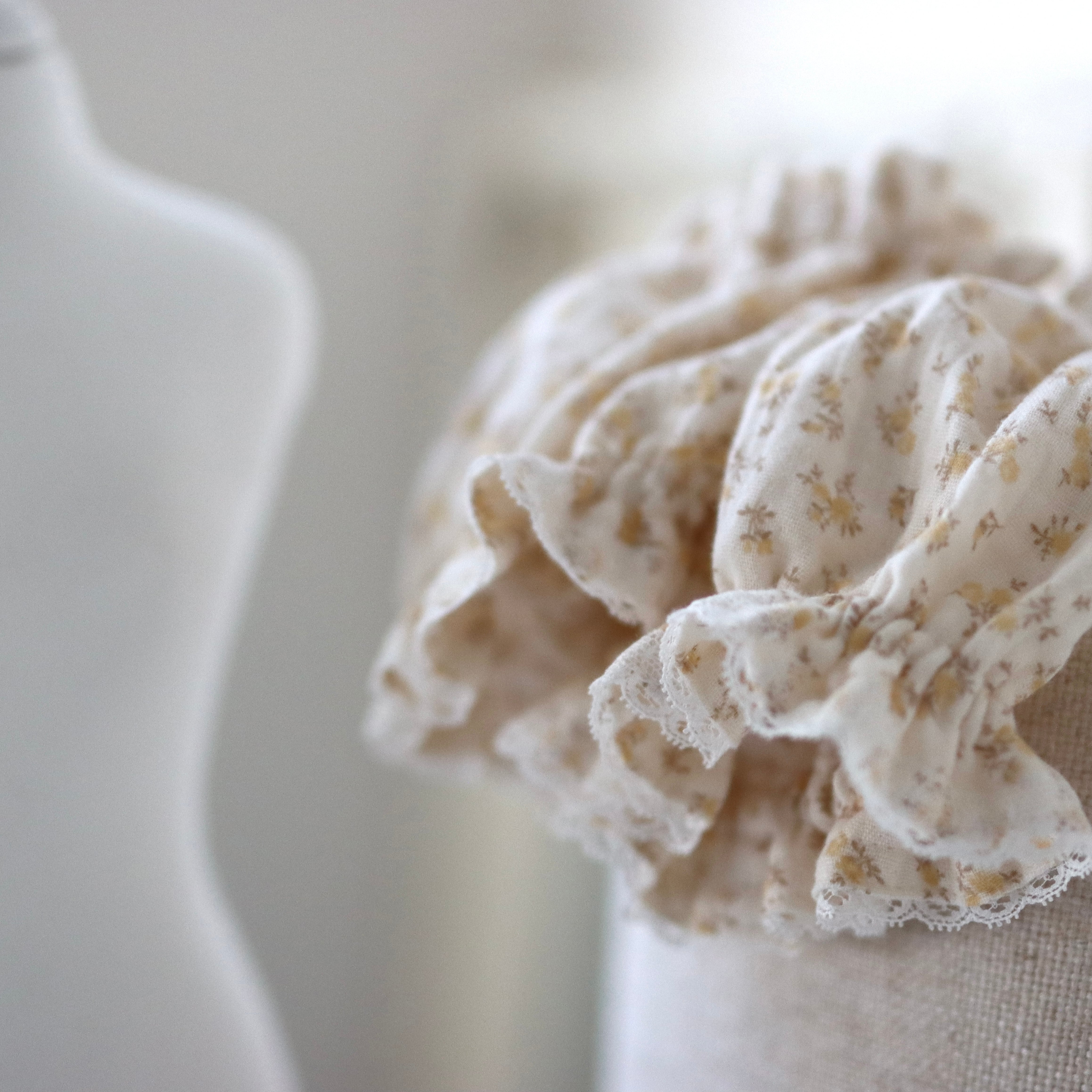 レースは片面のみにおつけしていますので、手前に着けたり、スッキリと後ろ側に着けたり♡