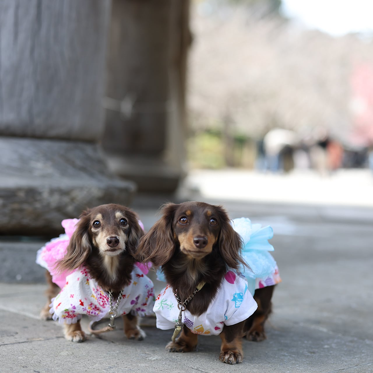 帯はどちらもつくり帯縫い付けタイプ。お腹でマジックテープをとじるだけで簡単に可愛く仕上がり、動いてもズレません。