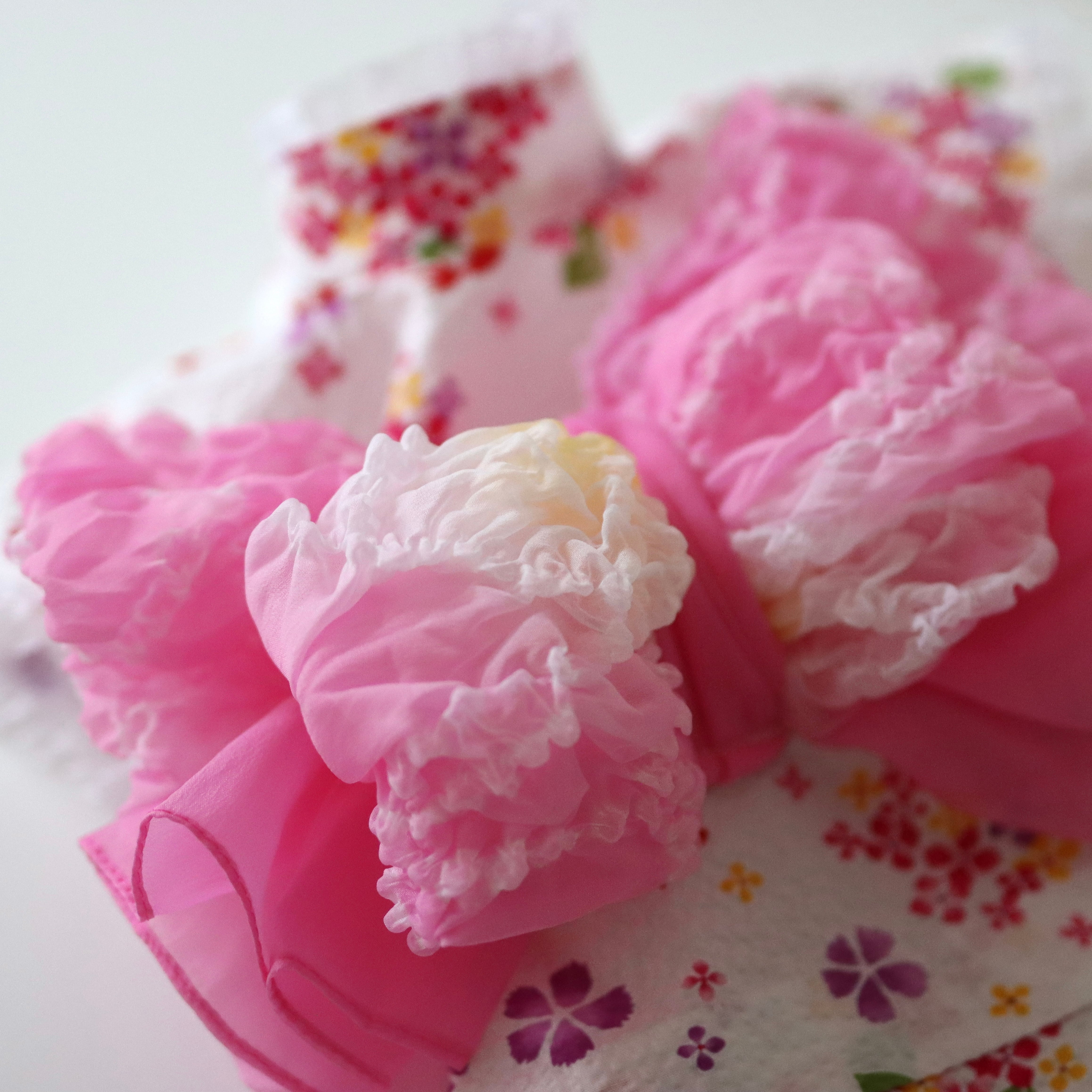 帯は ふわふわ兵児帯(ピンク・ラムネ)、半幅帯(ピンク)からお選びください♪