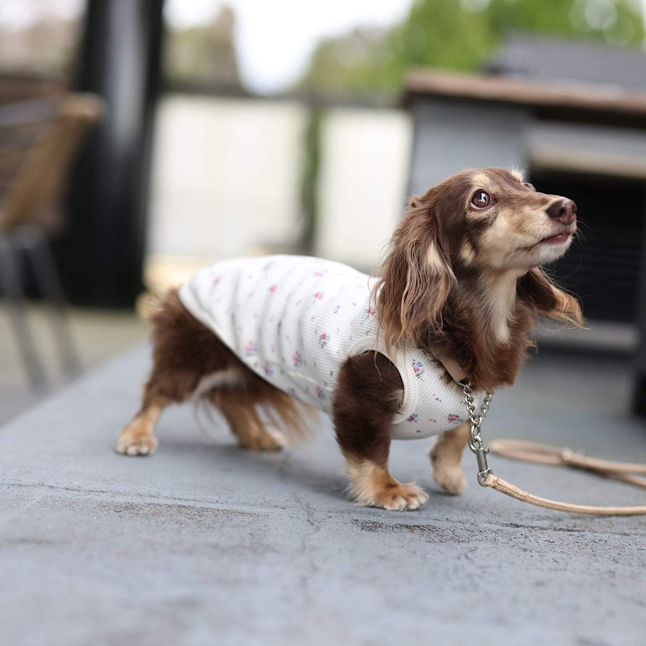 負担なく着られるので、パピーのお洋服練習にも、シニアさんにも、またお洋服苦手だけど・・お散歩時のお腹の汚れ防止に・・というご愛犬にも最適です。