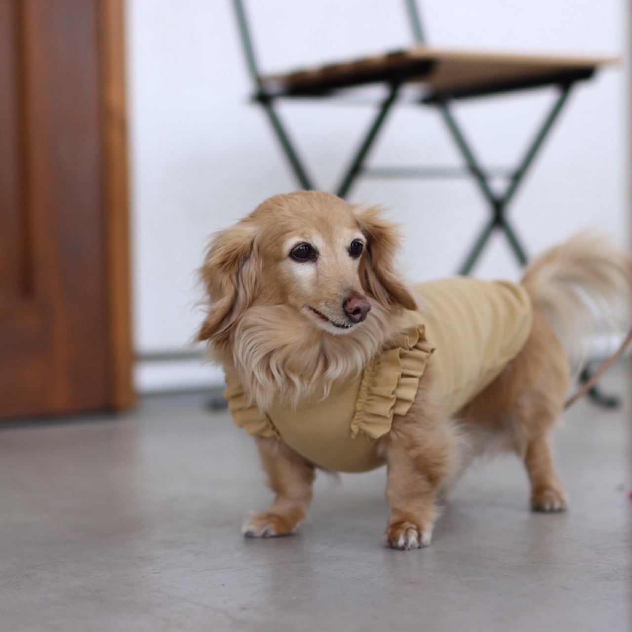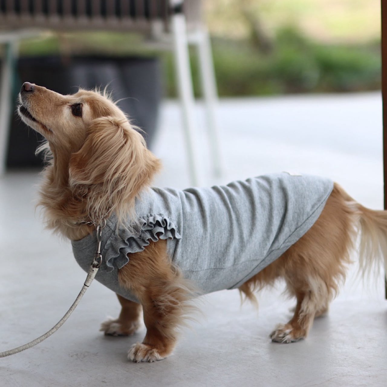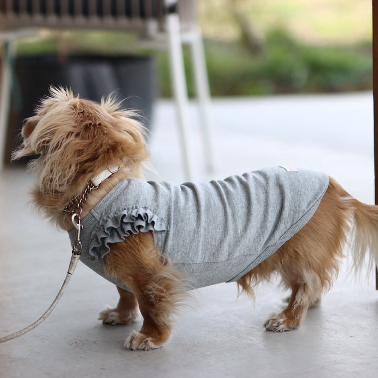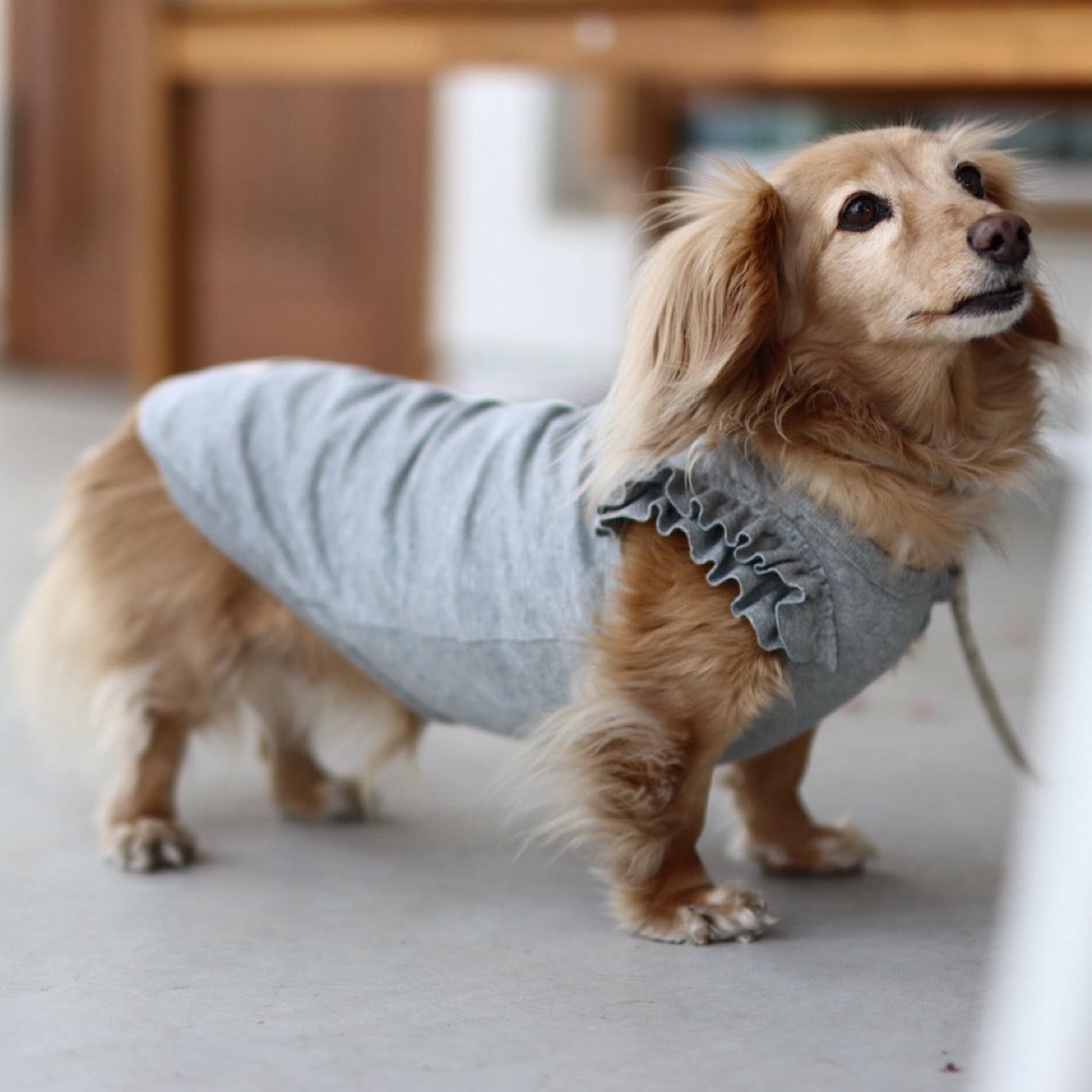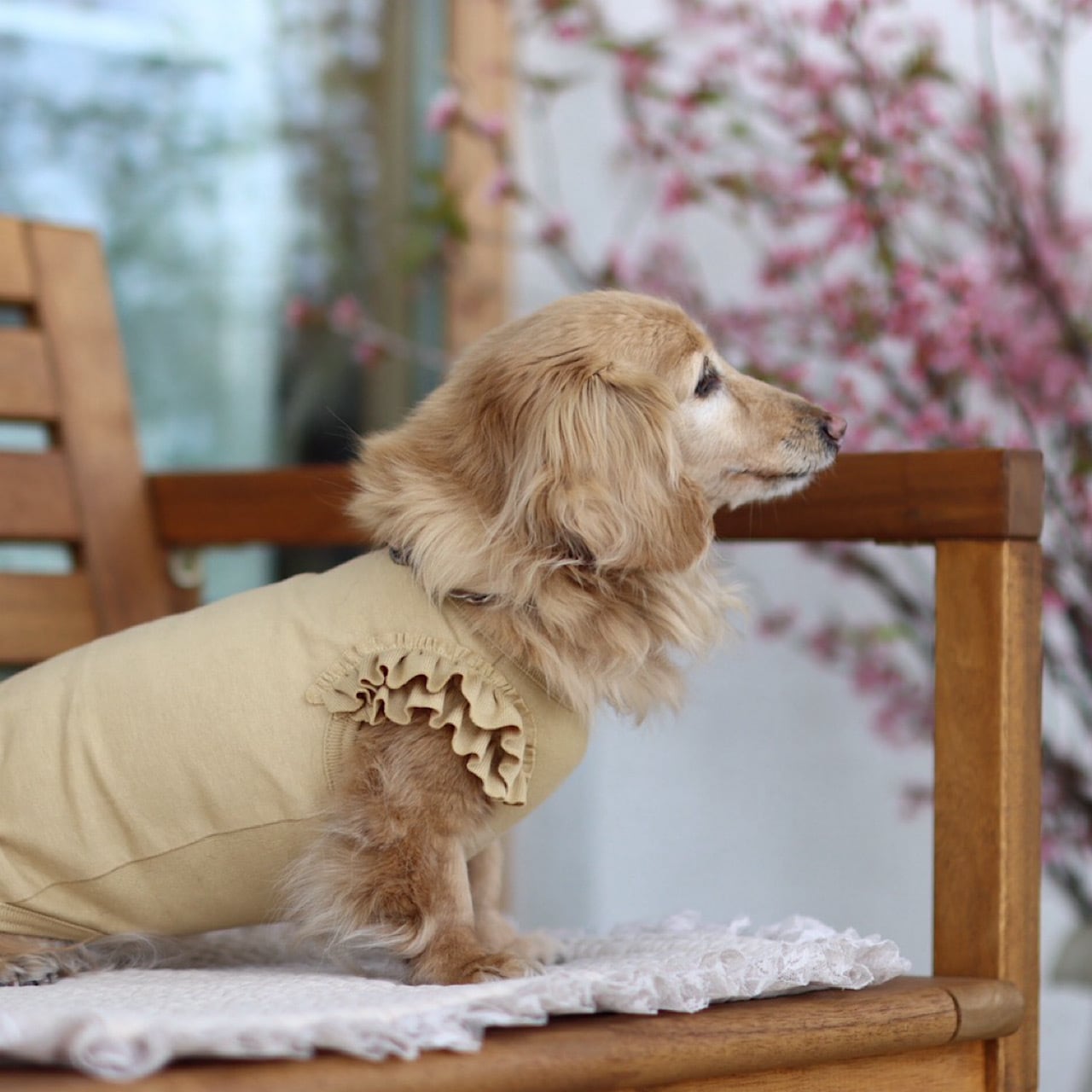 横からの角度では少したっぷり贅沢なボリュームも感じることのできるフリルになっています。