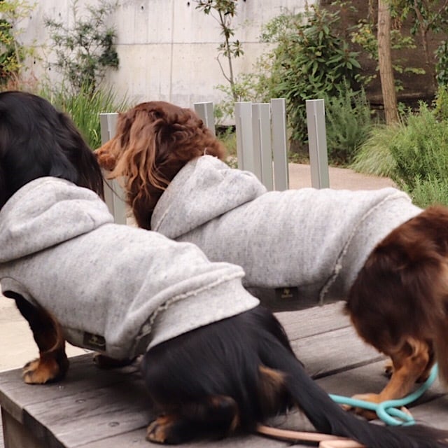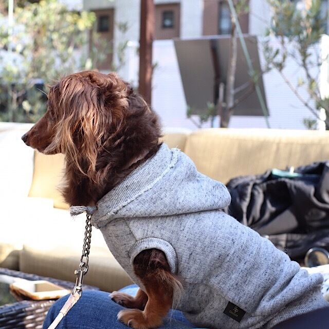 フードの紐は、ダックスの体型を考えて短めに設定しておりますが、