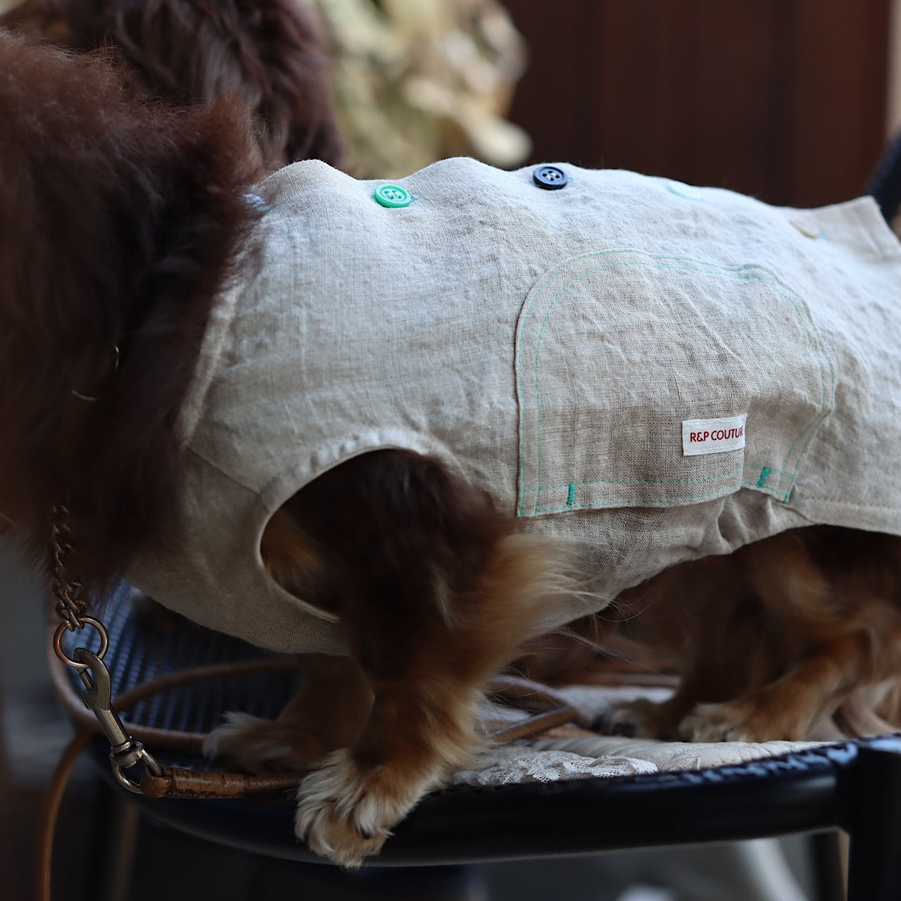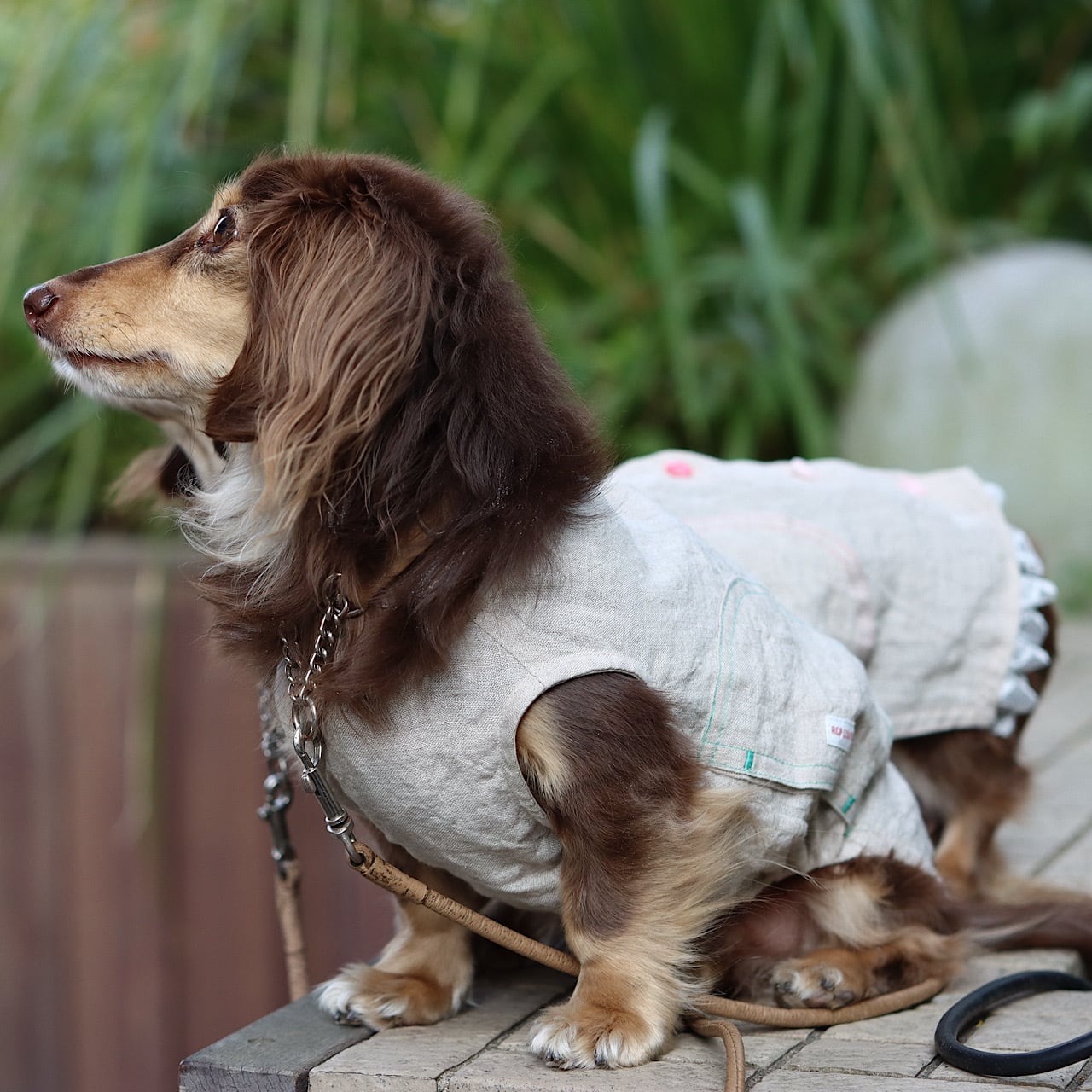 丸みをもった変形ポッケは胴長ダックスが動く度に柔軟にフォルムをデザインします。