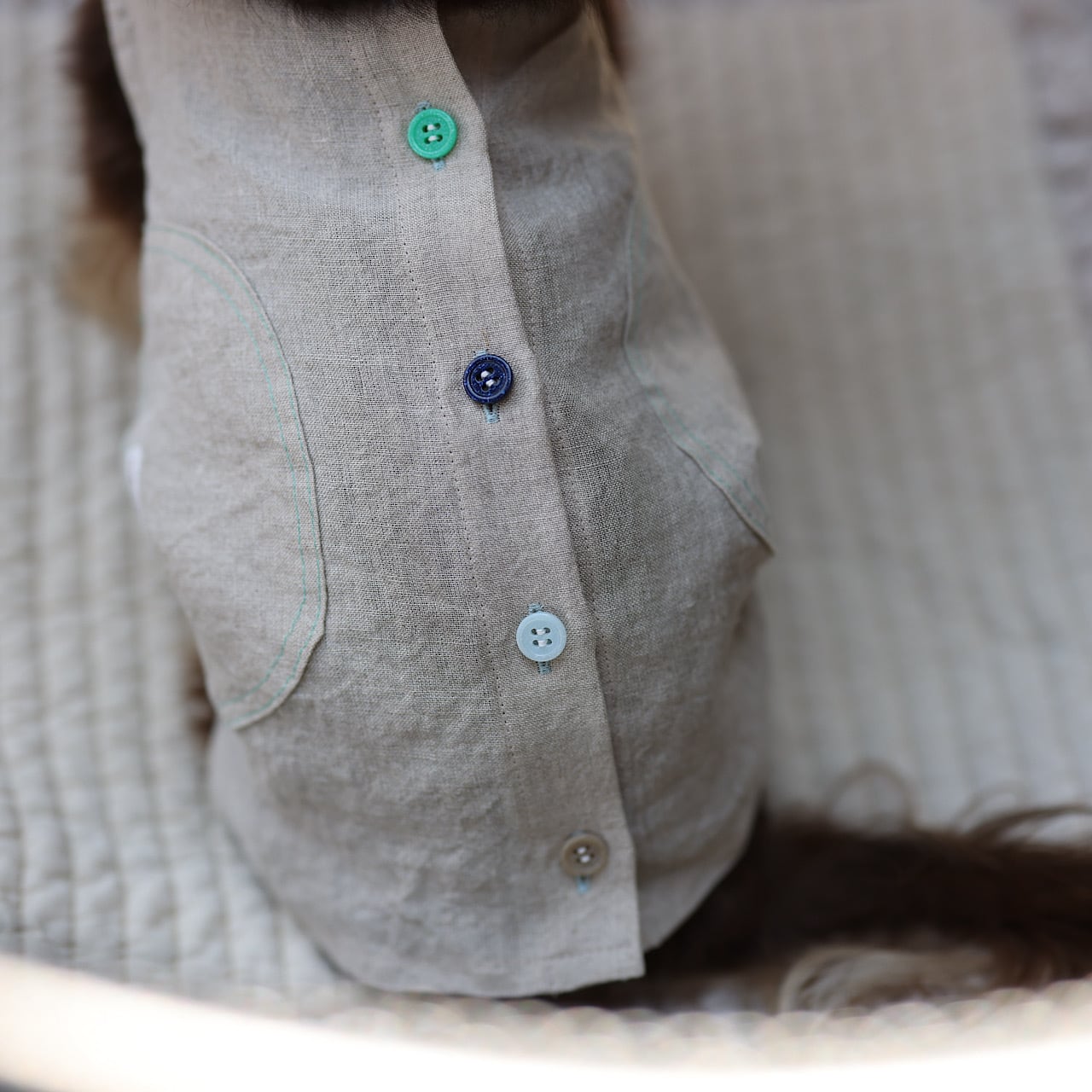 ステッチやボタンの色が楽しい組合せ‼︎