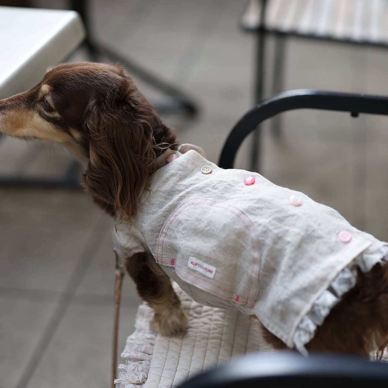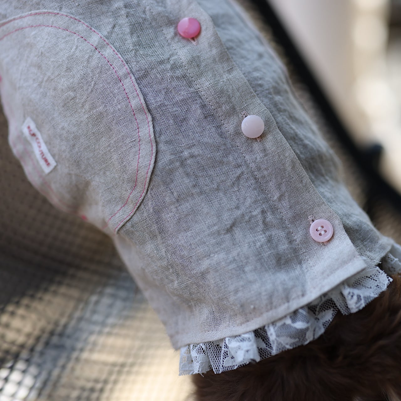 丸みをもった変形ポッケは胴長ダックスが動く度に柔軟にフォルムをデザインします。