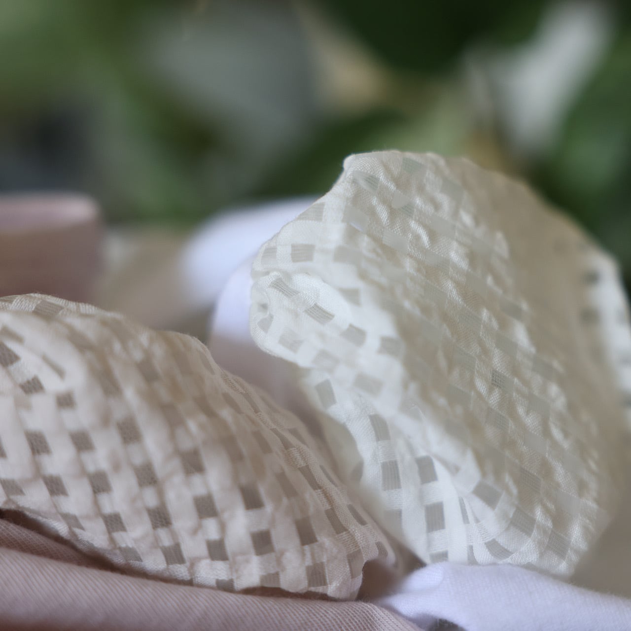 【シアーチェック】パフは2色。すっきりホワイト(オフ)と、上品ピンク。