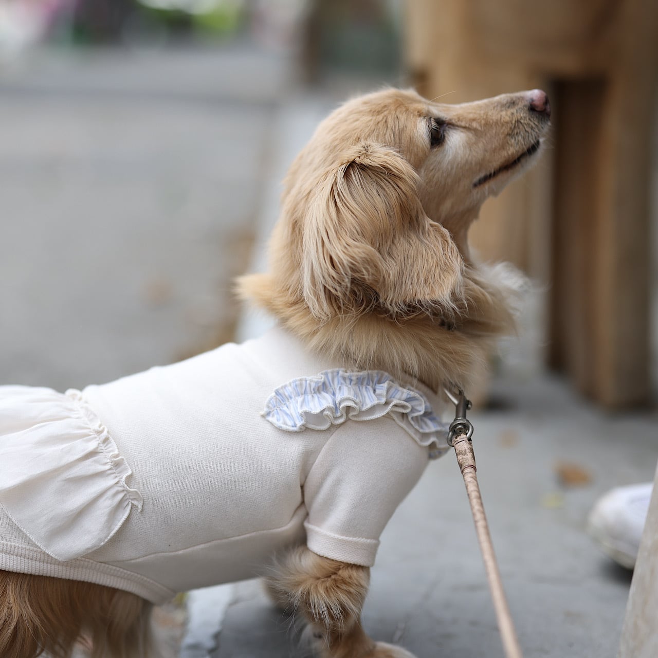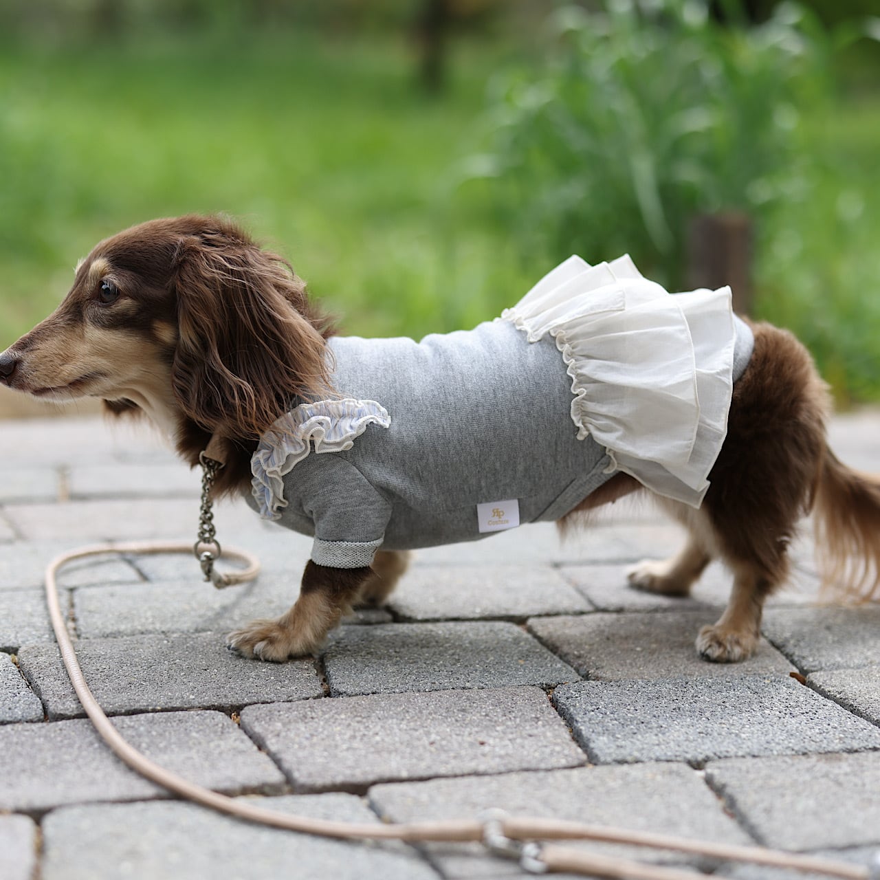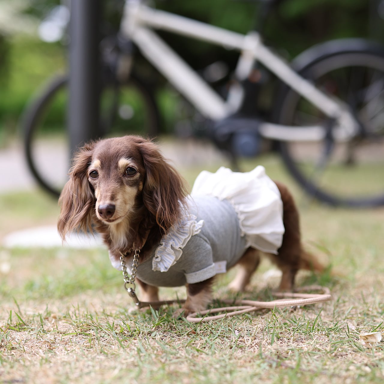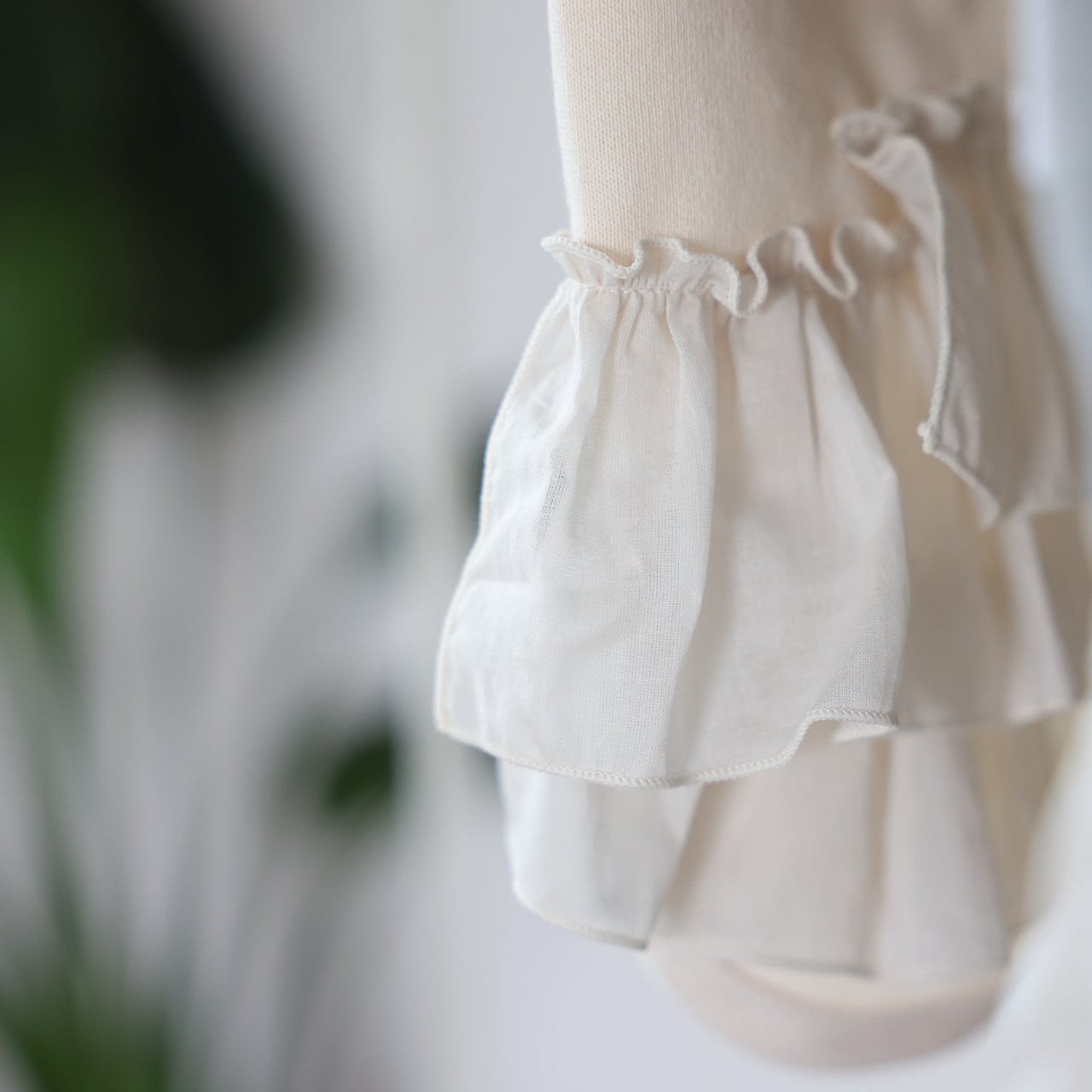 3段が不規則に重なり、立体的で軽~い着心地が素敵です。