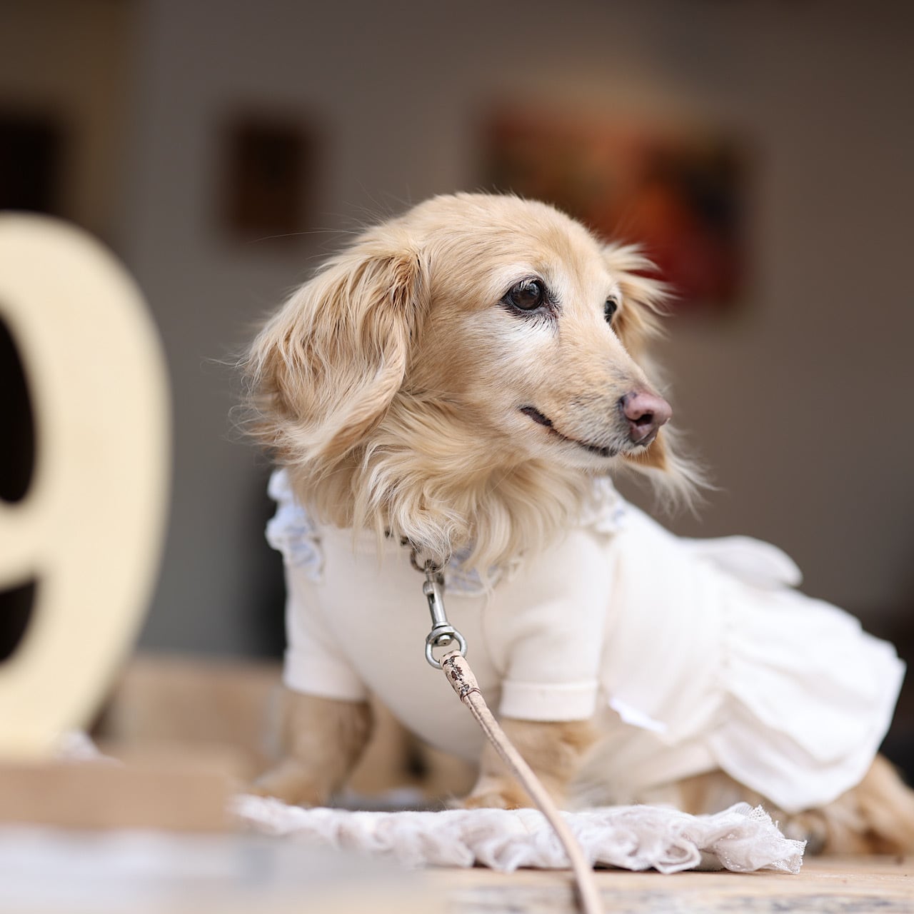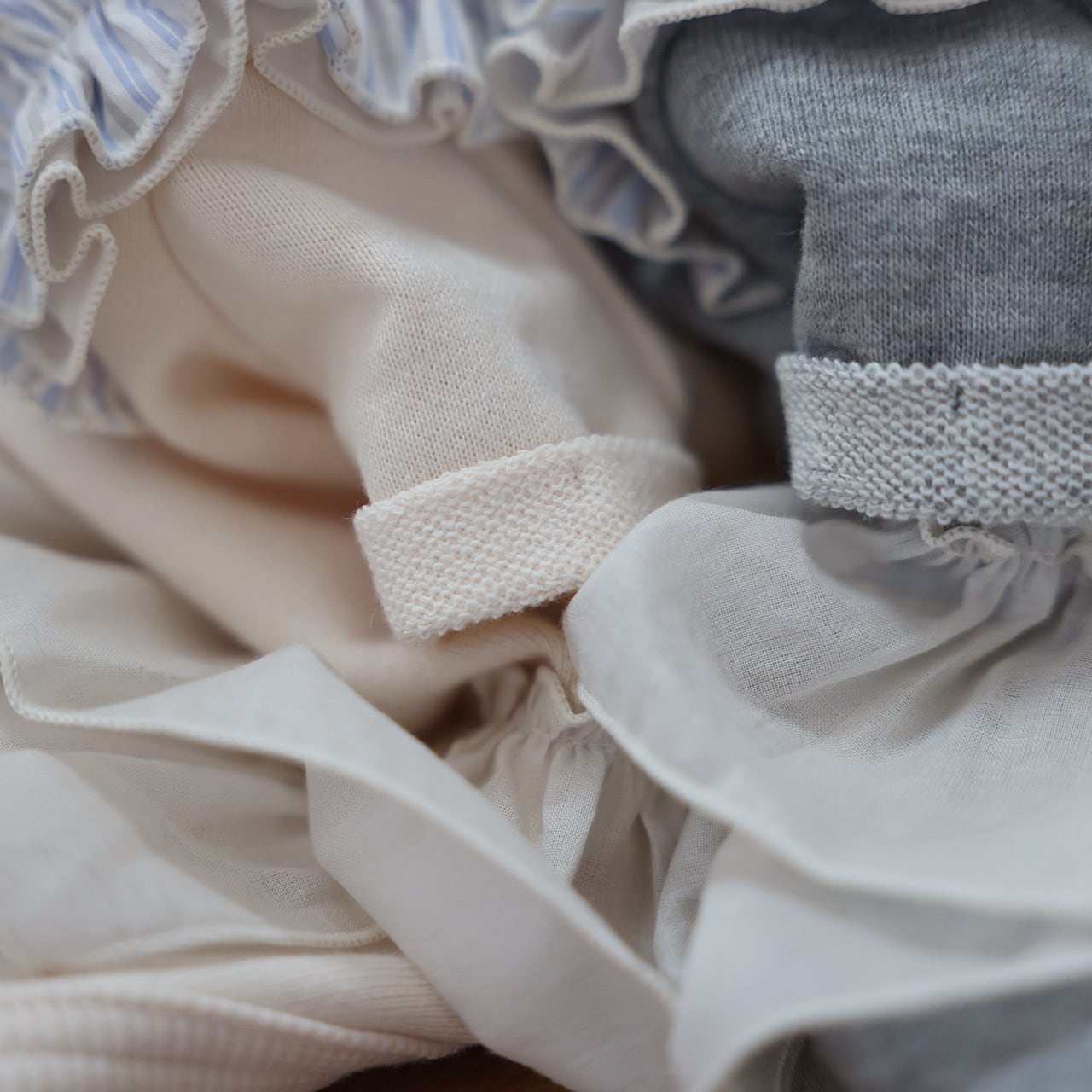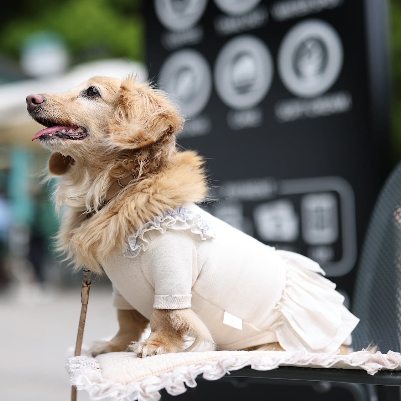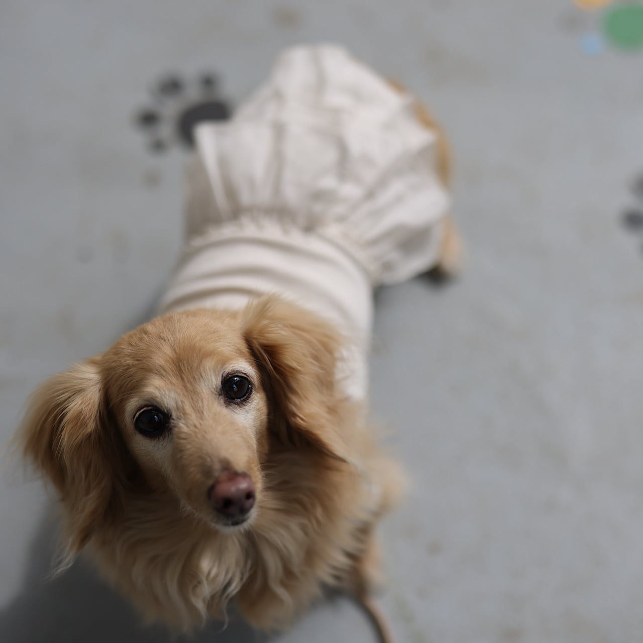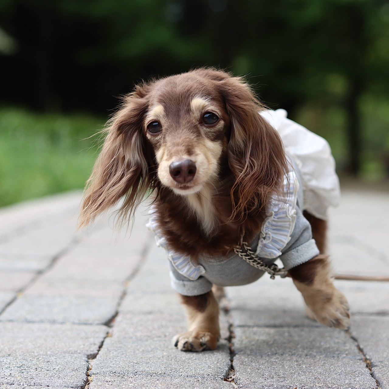 3段が不規則に重なり、立体的で軽~い着心地が素敵です。