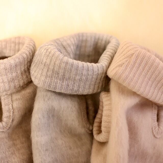 起毛ビーバー仕上げのニット生地はとにかく柔らかく軽く・・密で保温性に富んでいます。
