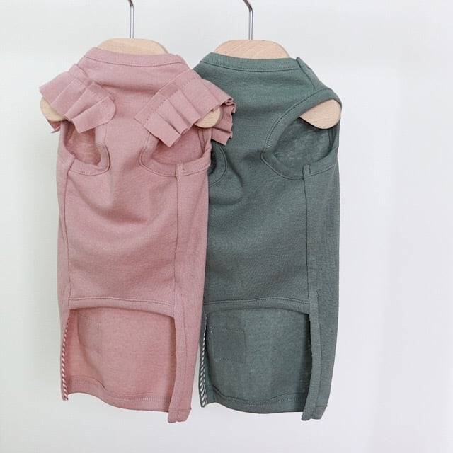 また、普段はお袖が苦手なご愛犬にも、腕を通さないひらひらで、ちょっぴり袖ありウェアの雰囲気を。是非お試し下さいませ。
