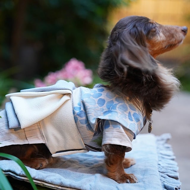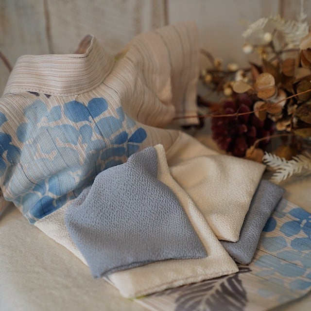 柔らかい紫陽花の柄が素敵な浴衣に仕立て上りました。