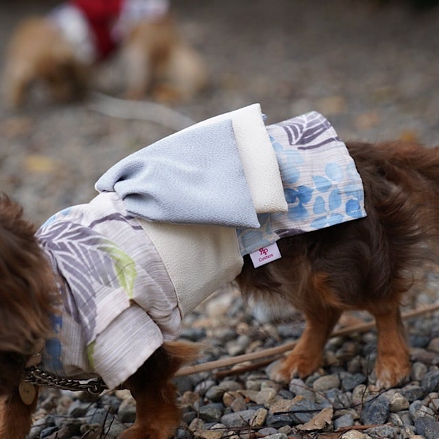 四足歩行の特徴に合わせて、帯は縫い付けております。