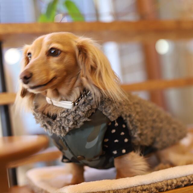 カモフラは撥水機能がありますので、冬の湿気がある日のお散歩にぴったり。