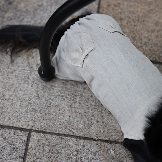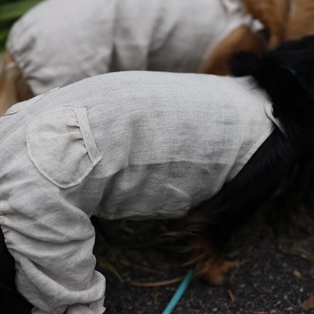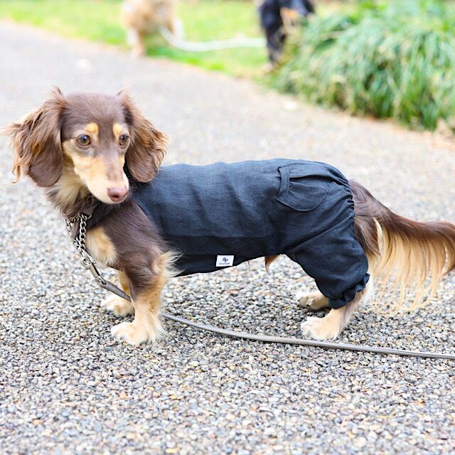 ダックスの体型バランスだからこそ・・腰の低めな位置にギャザーを寄せて。