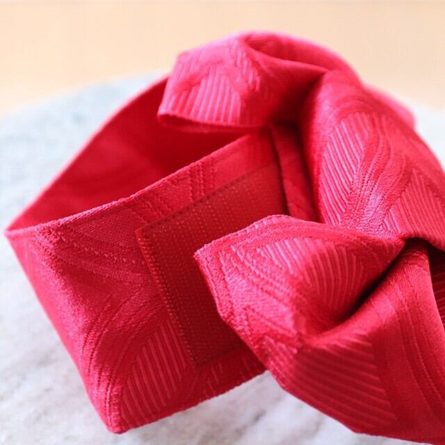 半幅帯は、身頃を着用した上に胴にぐるりと巻き、腰の位置で留めます。