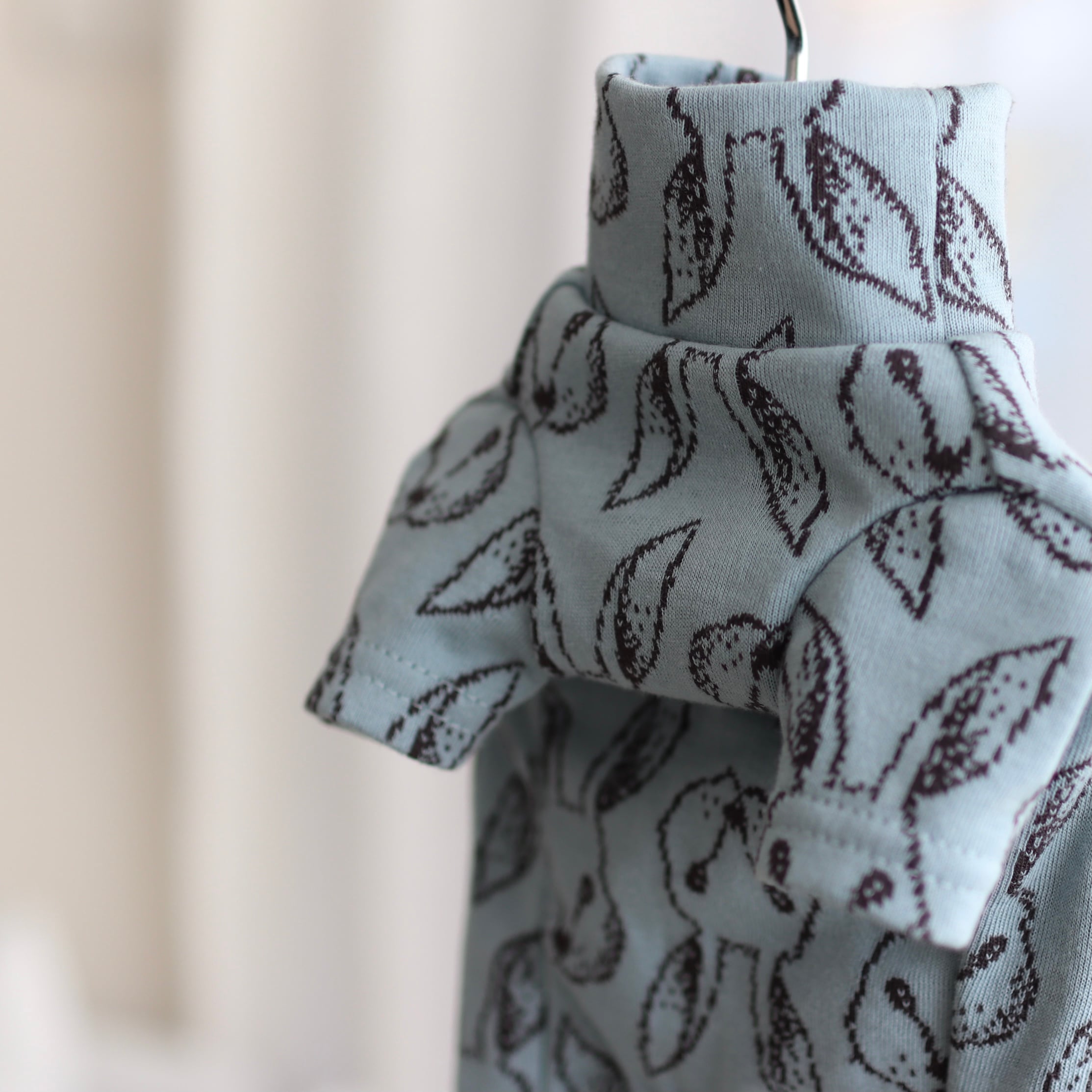 ”ラパン”・・リアル可愛いうさぎ柄を素敵なカラーで身にまとうお洒落!こちらはブルーラパン。他商品ページにてピンクラパンもございます。<ニットタンク>に同柄をご用意しております。