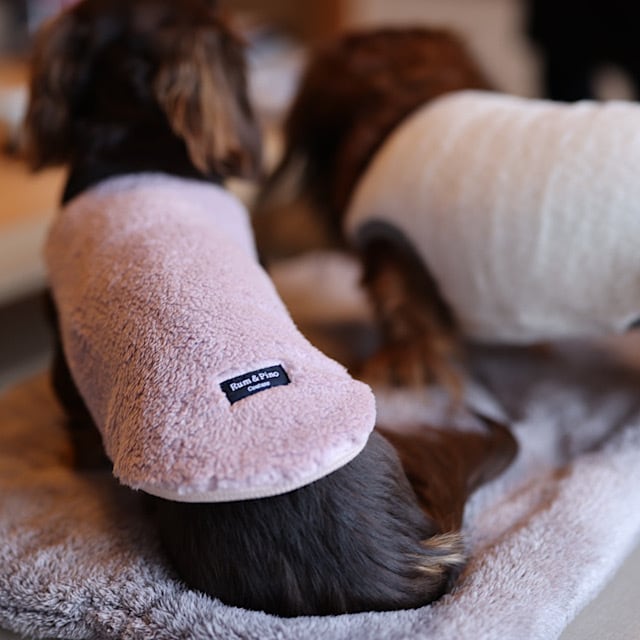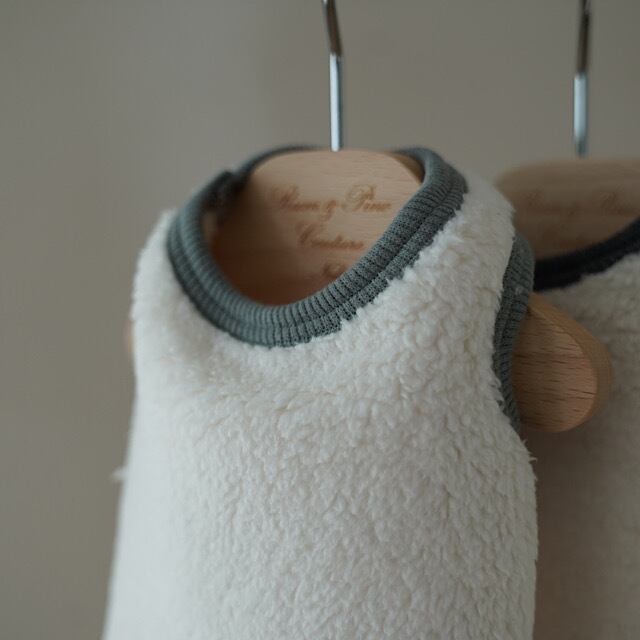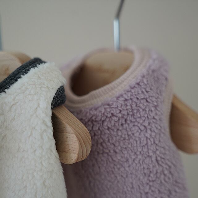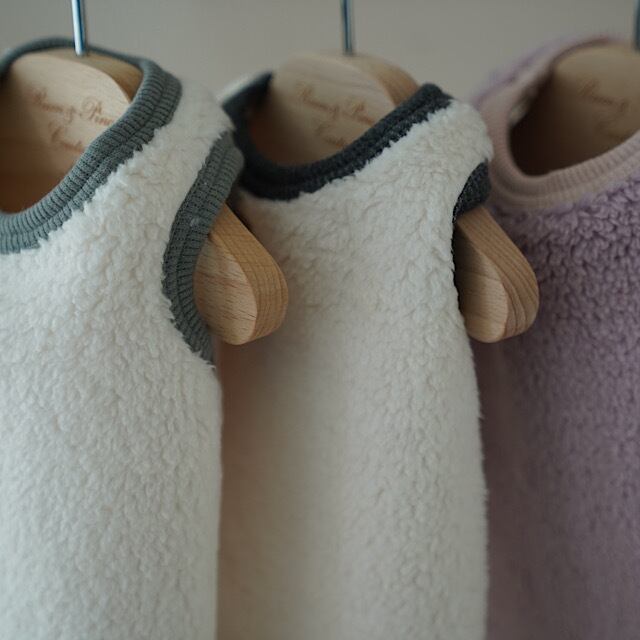 ピンクのボアは、優しいピーチのような可愛いお色。リブもピンク系でまとめています。