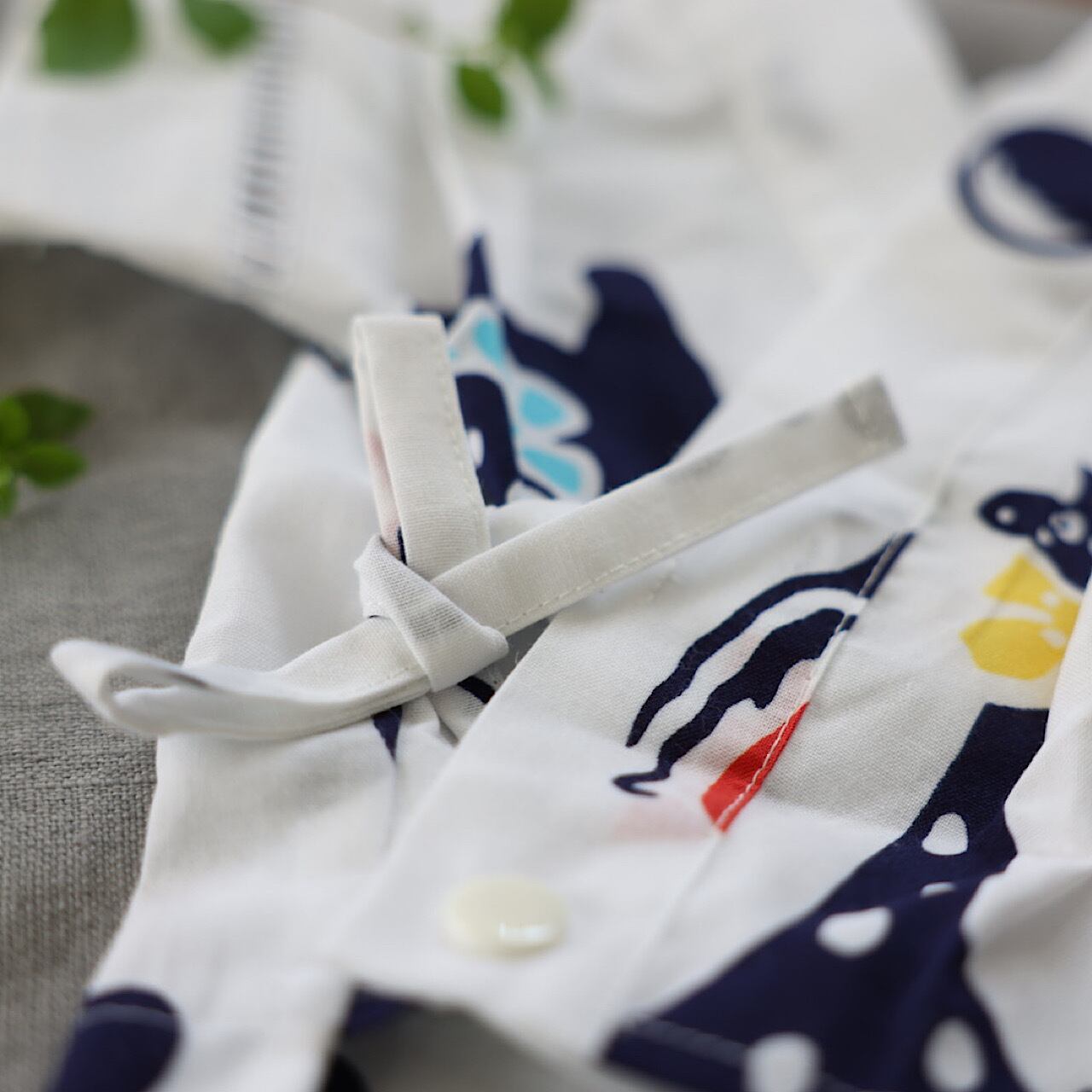 付け紐で結び、中にはスナップボタンも2箇所お付けしており、帯要らずで着崩れません。普段着としてもノーストレスです。