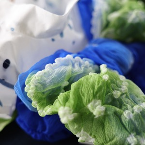 染め物のため色落ちはありますが、洗う度に柔らかく風合いを増していき、注染ならではの味わいをお楽しみいただけます。