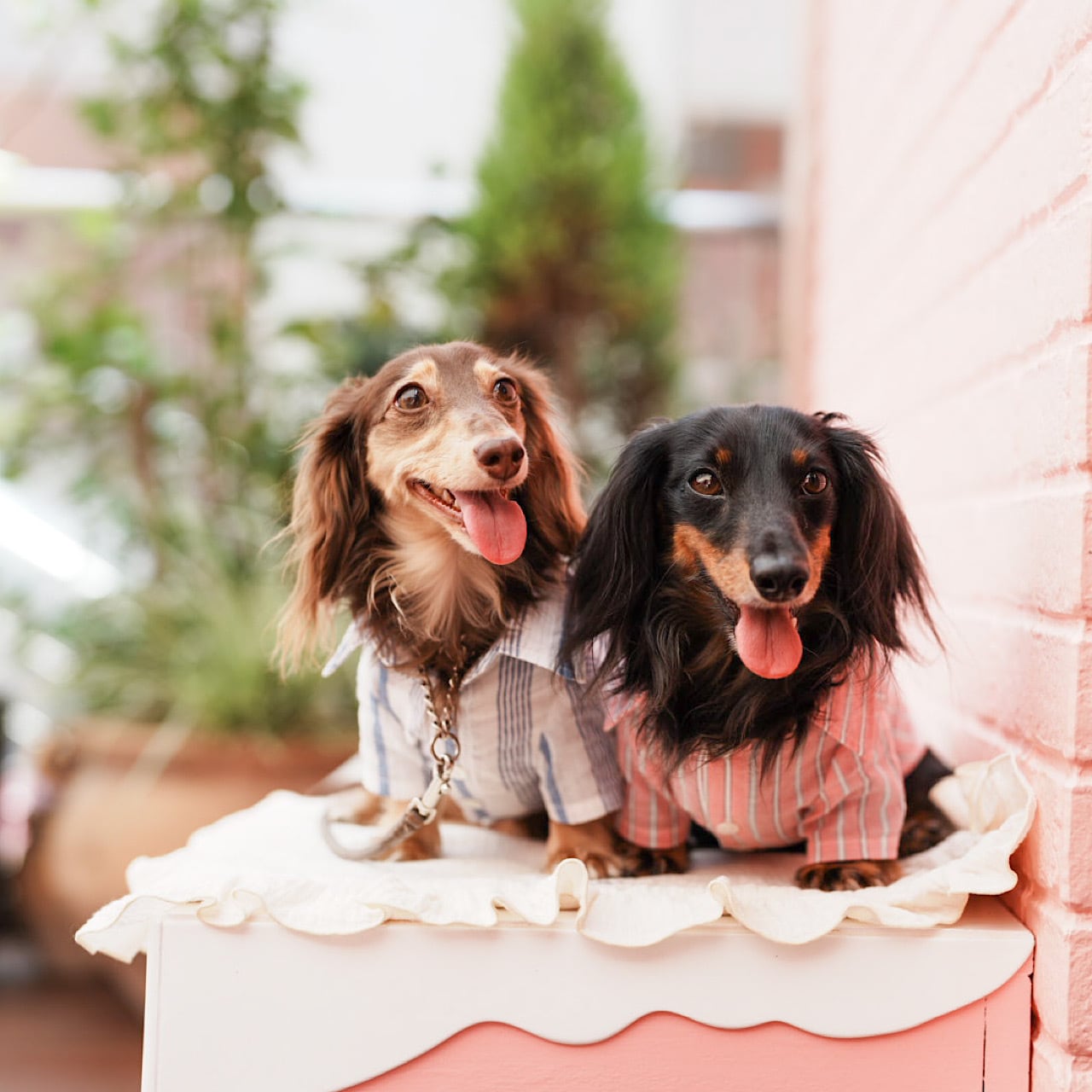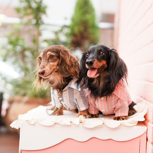ピンクは、落ち着いた色味のアイビーストライプが効いていてお洒落です♪