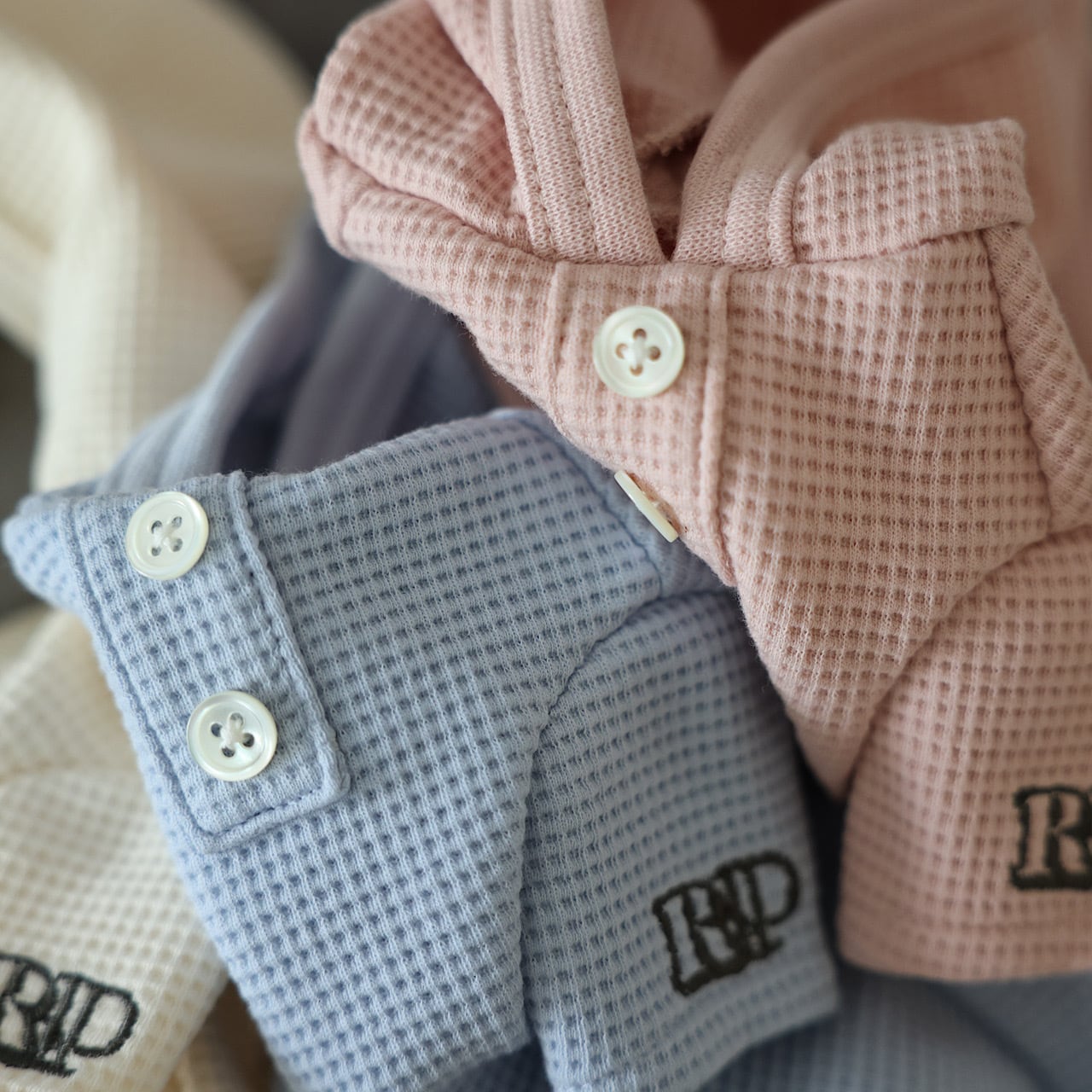 ベビーウェアのようなワッフル素材は着心地が良く人気です‼