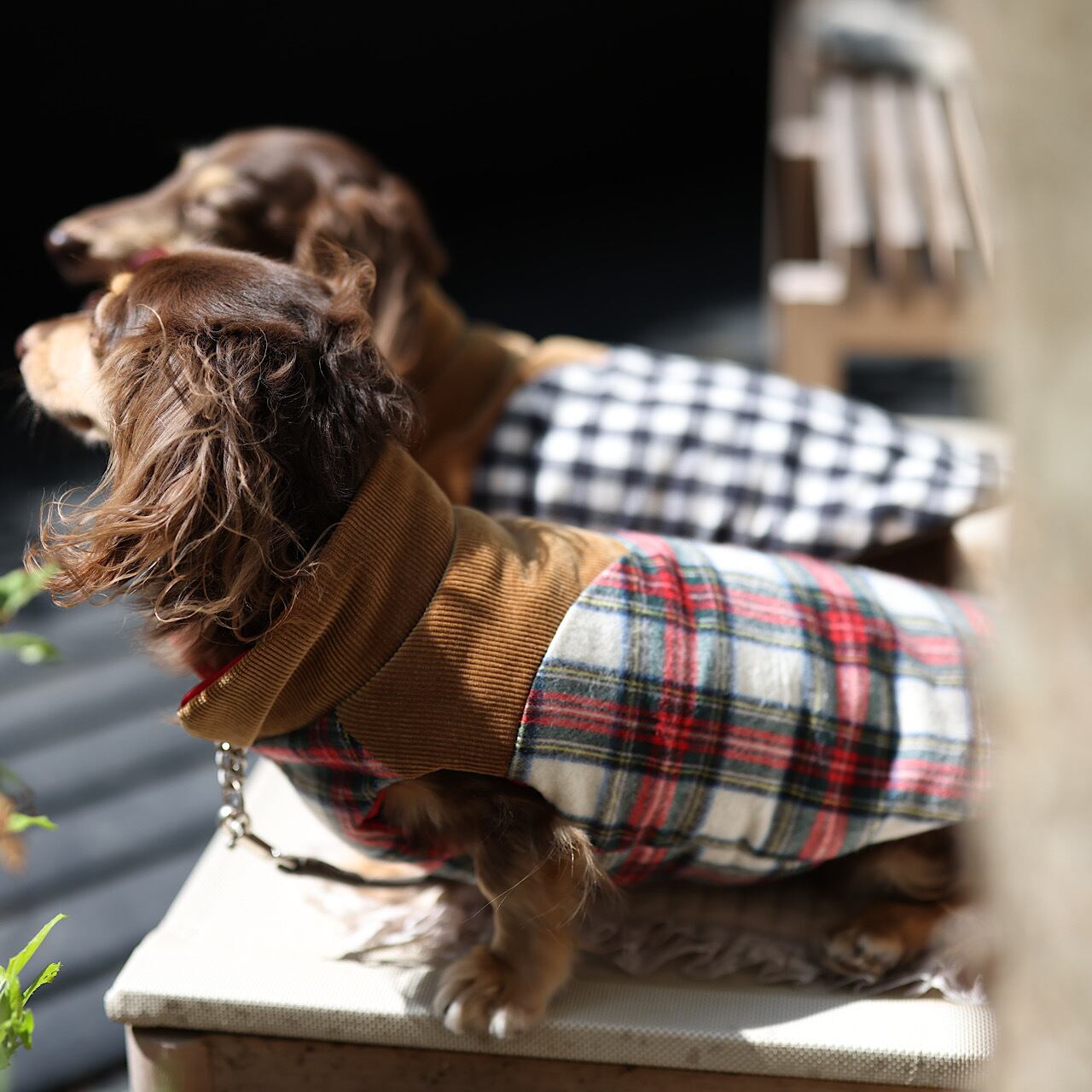 チェックの面は、起毛コットンで柔らかく暖かみのある肌触りです。丈夫なコーデュロイの切り替えでカジュアルに♡