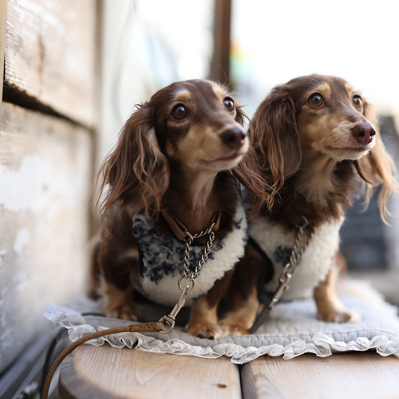 基本的には、まずご愛犬の胴まわり(四つ脚で立った状態で脇すぐ下の位置)を測り、ヌードサイズ表の”胴まわり”にあてはまるサイズをご選択ください。