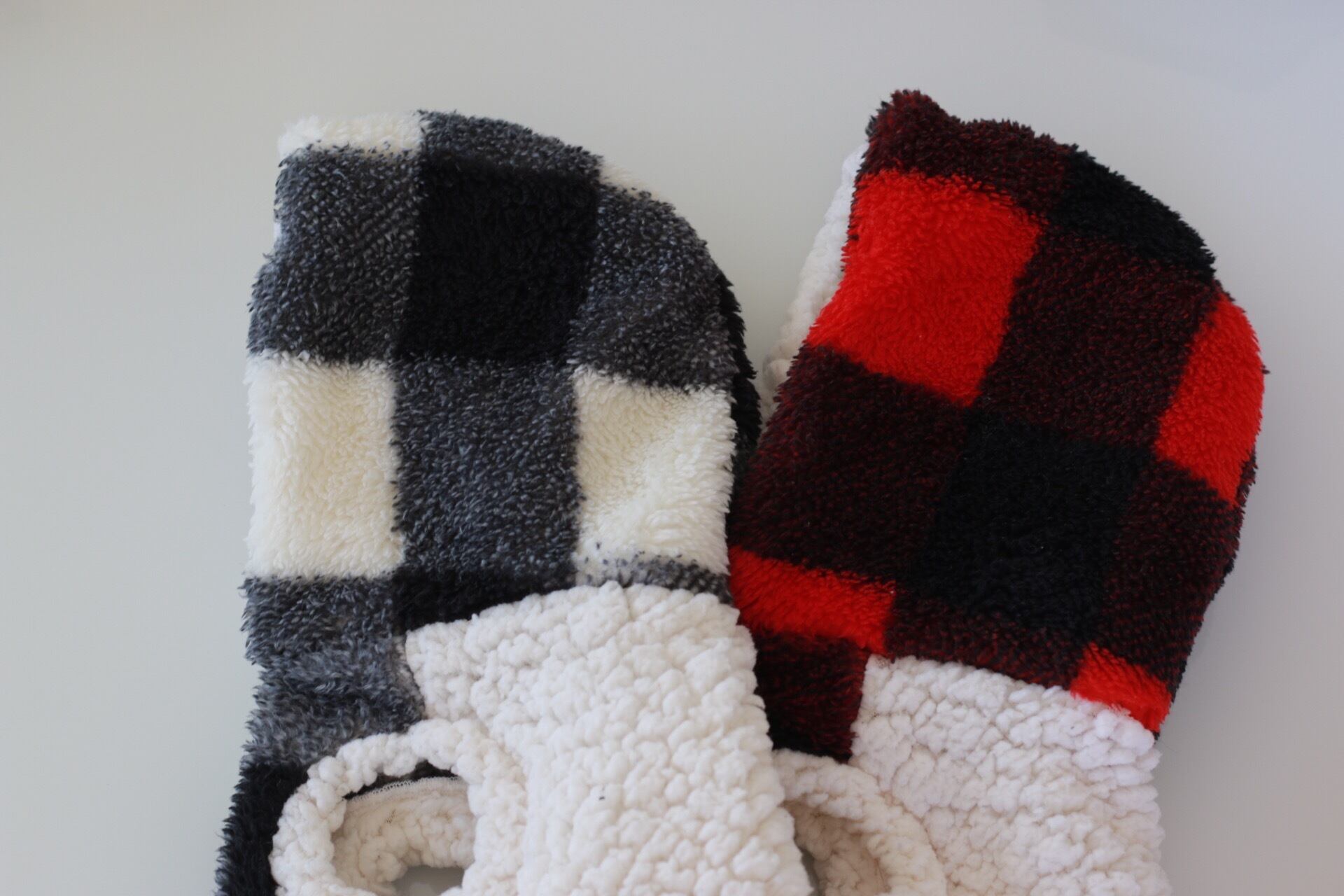 大柄のブロックチェックと、ミルク色のふわもこ。