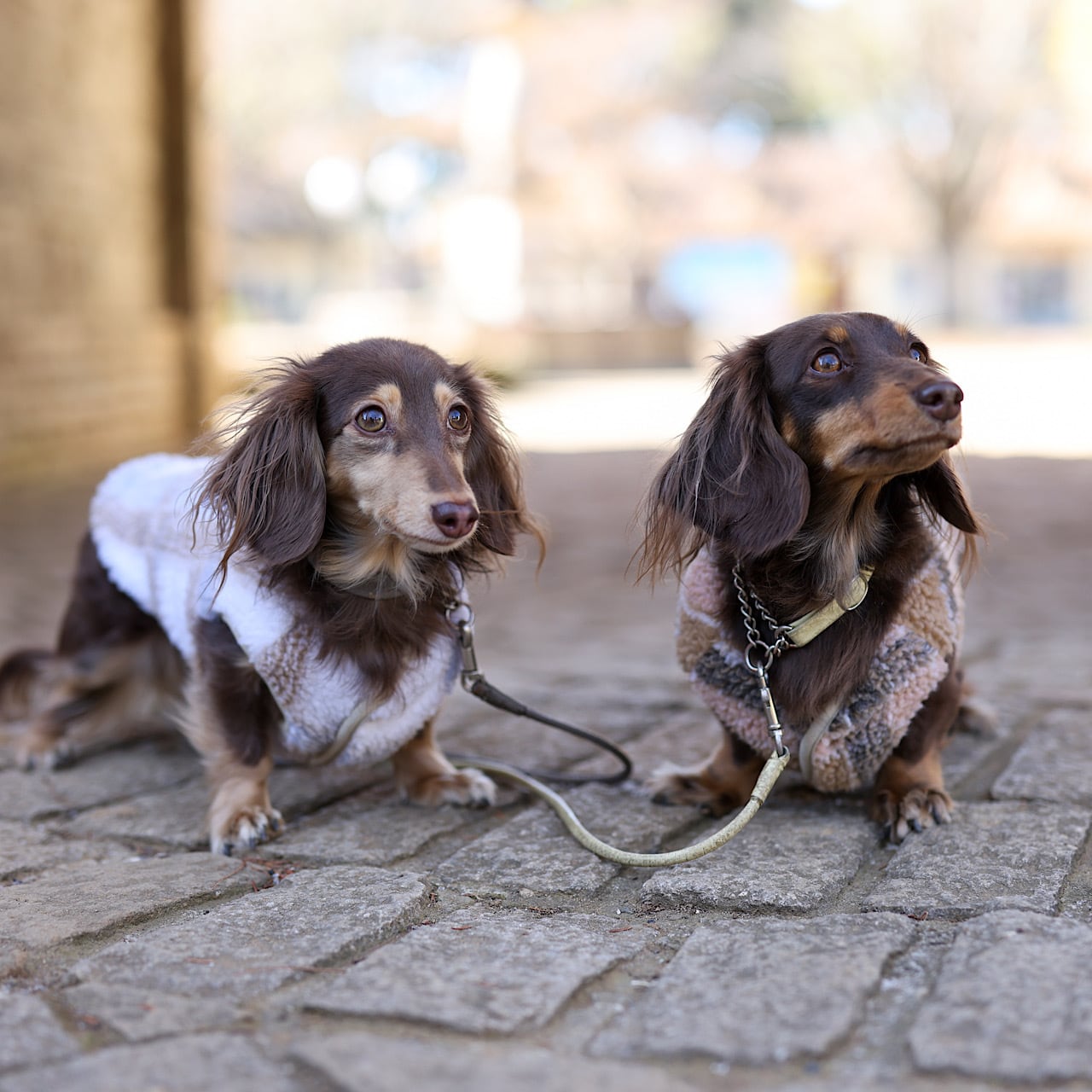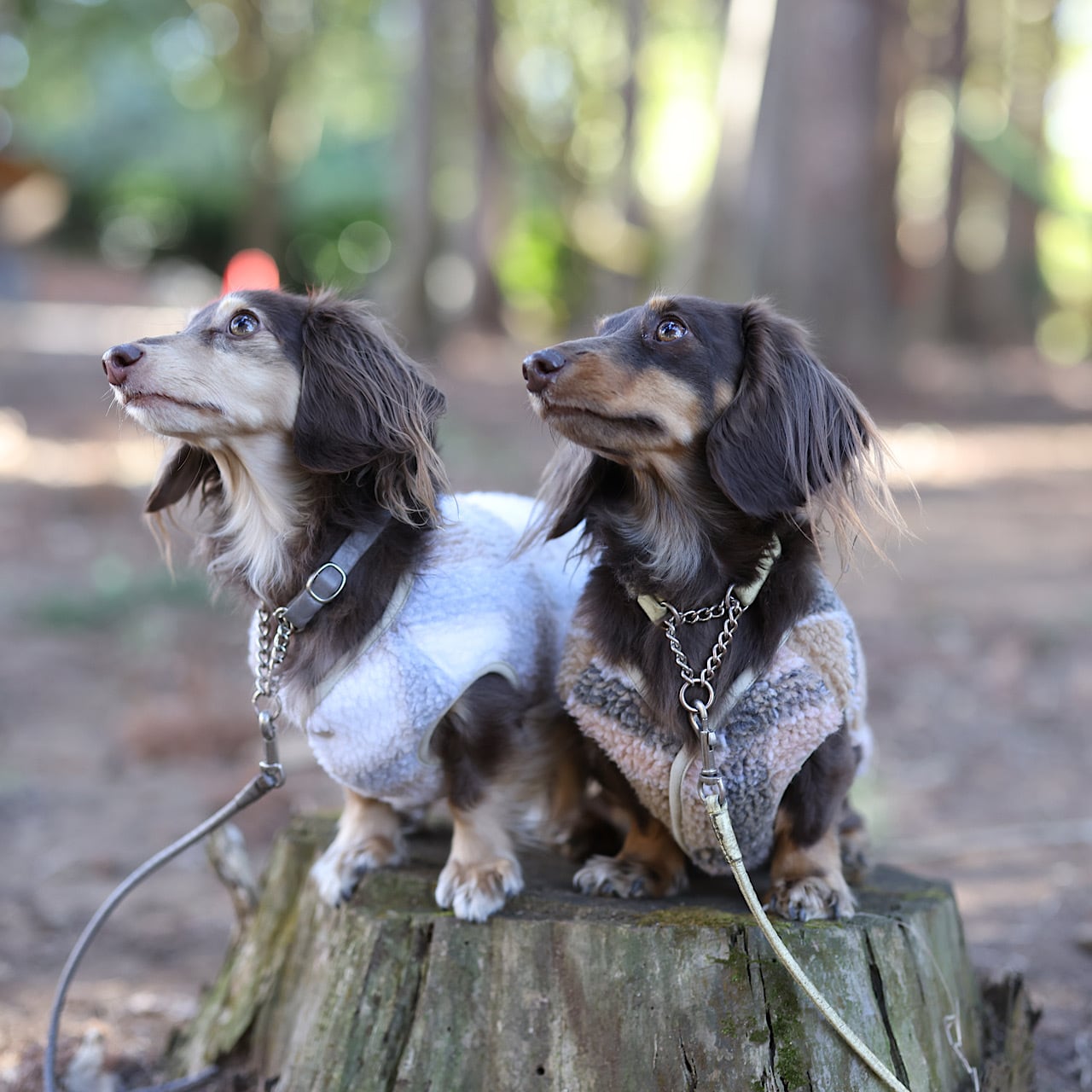 基本的には、まずご愛犬の胴まわり(四つ脚で立った状態で脇すぐ下の位置)を測り、ヌードサイズ表の”胴まわり”にあてはまるサイズをご選択ください。