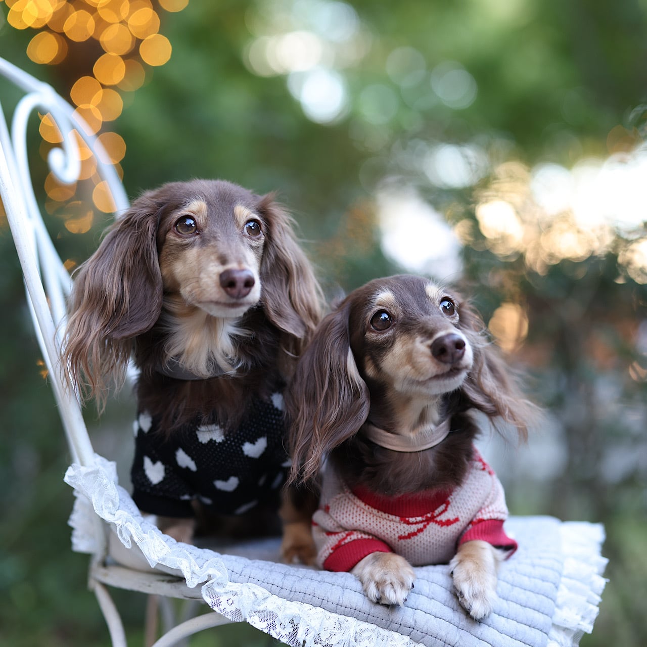 リボンの赤いセーターと、ハートの黒いセーター♡